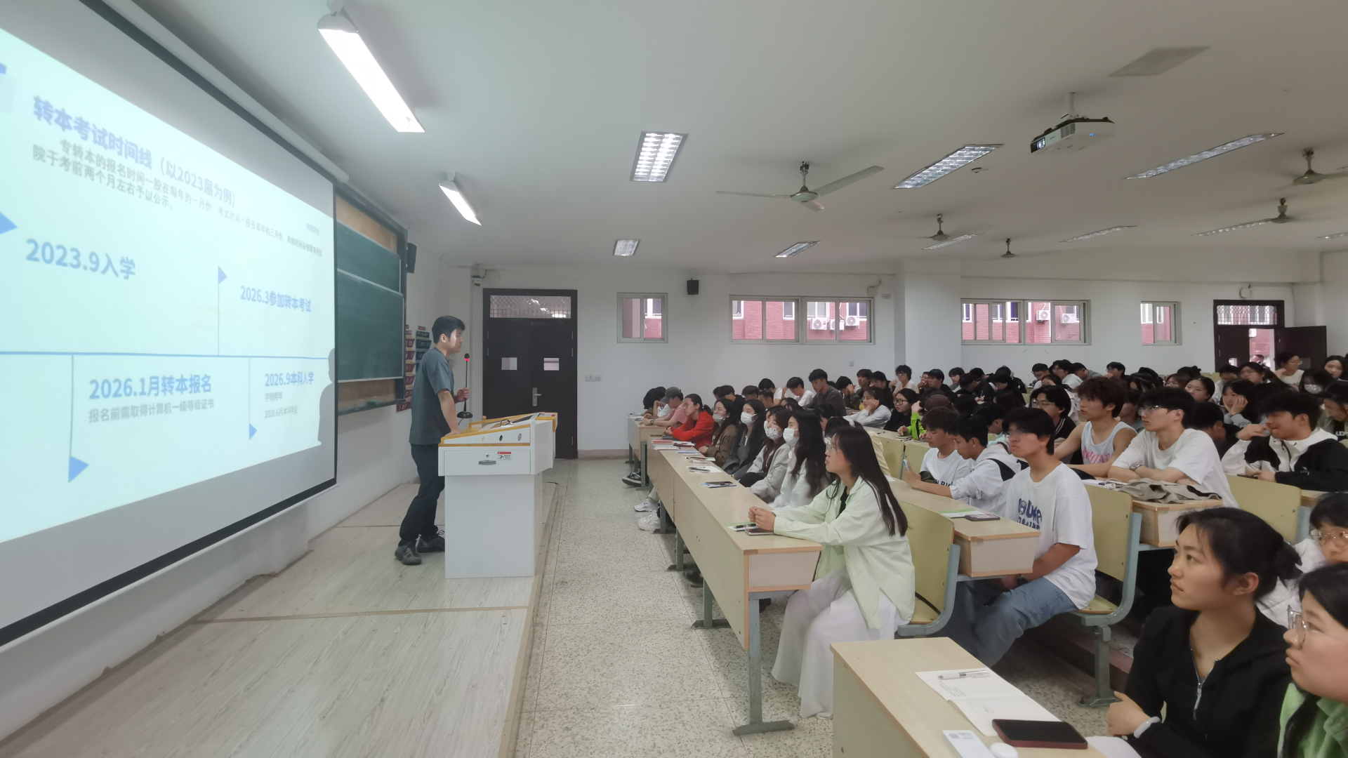 给自己一个清晰的定位,清楚的知道自己想干什么,怎么干?这是学生学习的源动力,如何开展有效、高效的学习,努力克服奋斗路上的困难,如何做到脱颖而出,时刻做好准备,实现机会都是留给有准备的人的,这是他行动的指南。进行分享的陆正阳,通过“代入式”的宣讲向大家讲述了自己的大学期间转本经历、生活经历以及考研经历。