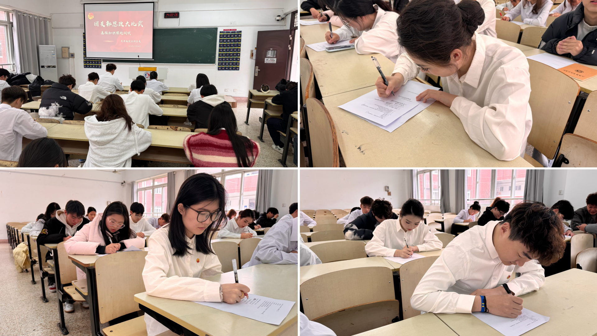 本次参赛选手已通过班级初赛,进入到系级复赛。复赛分为党团基础知识理论测试和主题团课两个环节。在基础理论测试现场,参赛团支书们沉着应对,冷静答题,展现了丰富的知识储备和扎实的团干业务能力。