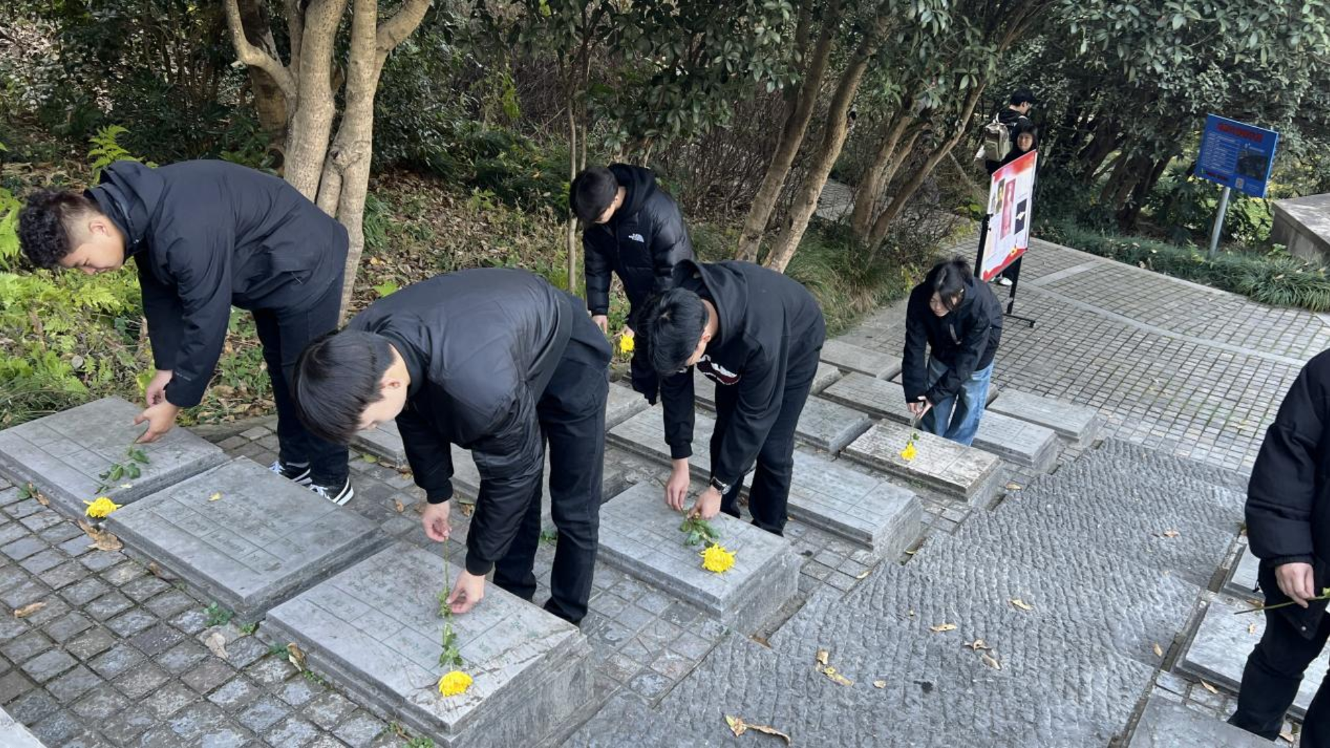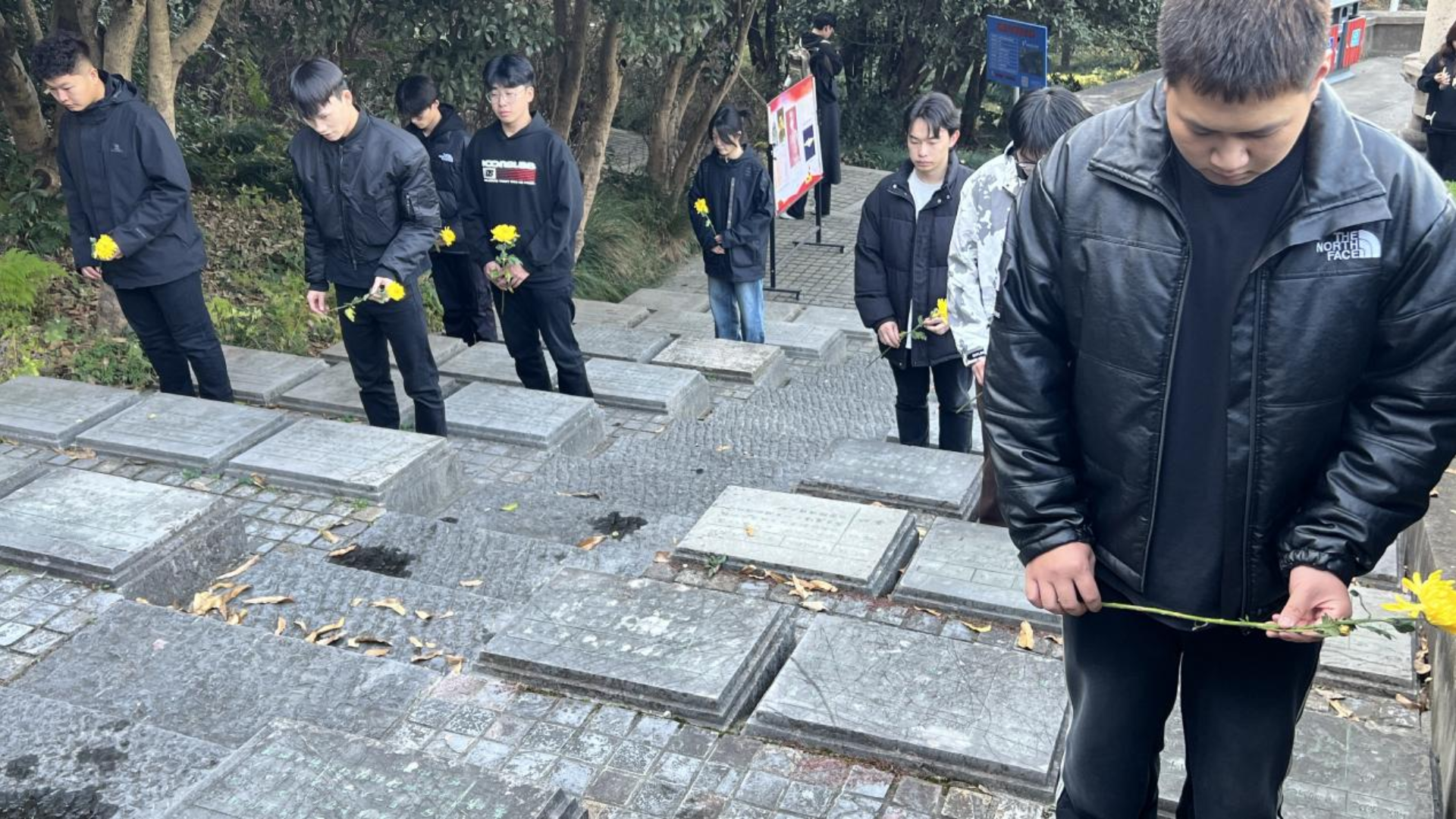 随后,同学们前往抗日航空纪念碑,向牺牲的烈士们敬献花篮,伫立在刻有革命烈士姓名的墓碑前,同学们深深默哀,表达对烈士们的哀思。