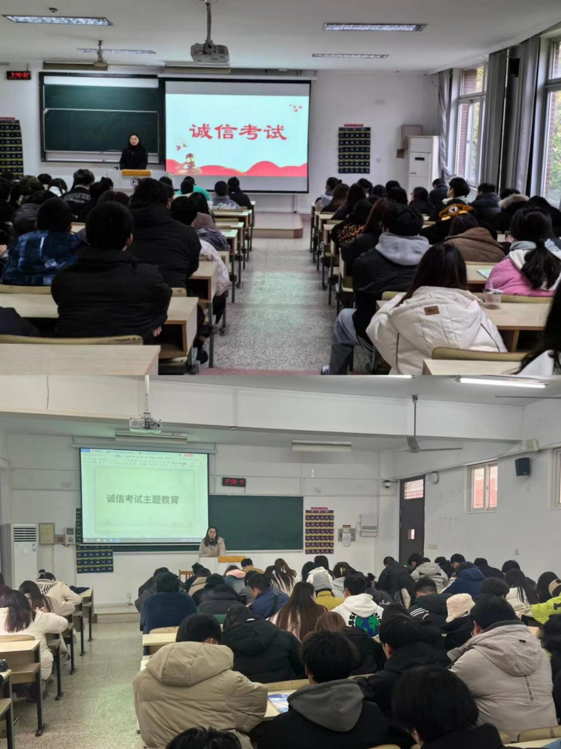 活动伊始,各年级辅导员对本次活动进行宣讲。详细讲述了关于学院关于考试作弊处罚制度。接着,带领同学们观看了以诚信考试为主题的相关视频,用最直观的方式促使学生深入了解了考试作弊的危害。于文倩老师从学生角度出发,讲述学生为何在考试中失信,并指出考试作弊对学生的不利影响和严重结果,呼吁同学们要以诚信的品质赢得他人的尊重和信任。同时,她希望学生干部应该以身作则,发挥模范作用,自觉遵守考场纪律,以实际行动维护考场秩序。