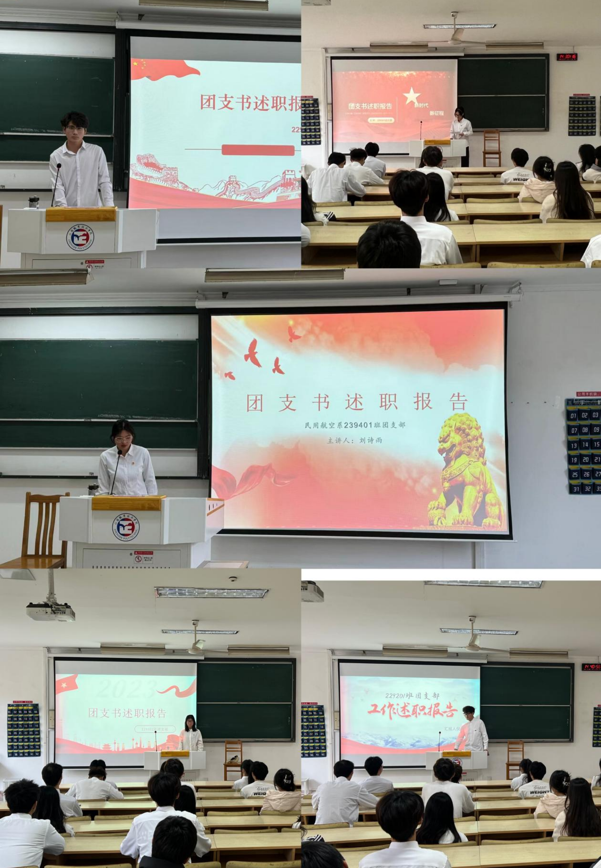 各团支书围绕思想引领、组织建设、校园文化、社会实践等方面详细汇报了本学年的工作职责落实情况和成效成果,充分展现各支部团员青年积极向上、团结和谐的精神面貌。同时,团支书们也勇于发现自己工作上的不足之处,并提出具体可行的改进方案,进一步对未来的工作做出规划和展望。