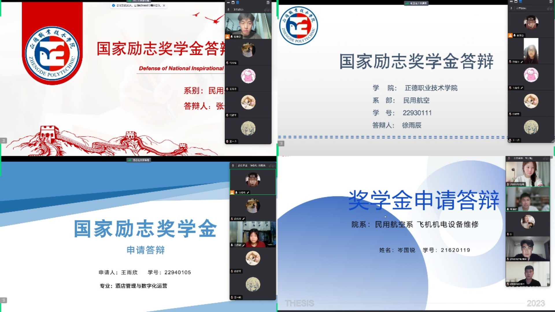 为充分发挥榜样育人的引领与激励作用,树立先进典型,10月11日晚,民用航空系开展国家励志奖学金答辩评审会。系团总支书记陈瑶,辅导员顾轩宇、陈瑶瑶、陈瑶担任答辩会评委,同时邀请系大一、大二学生线上观摩学习。