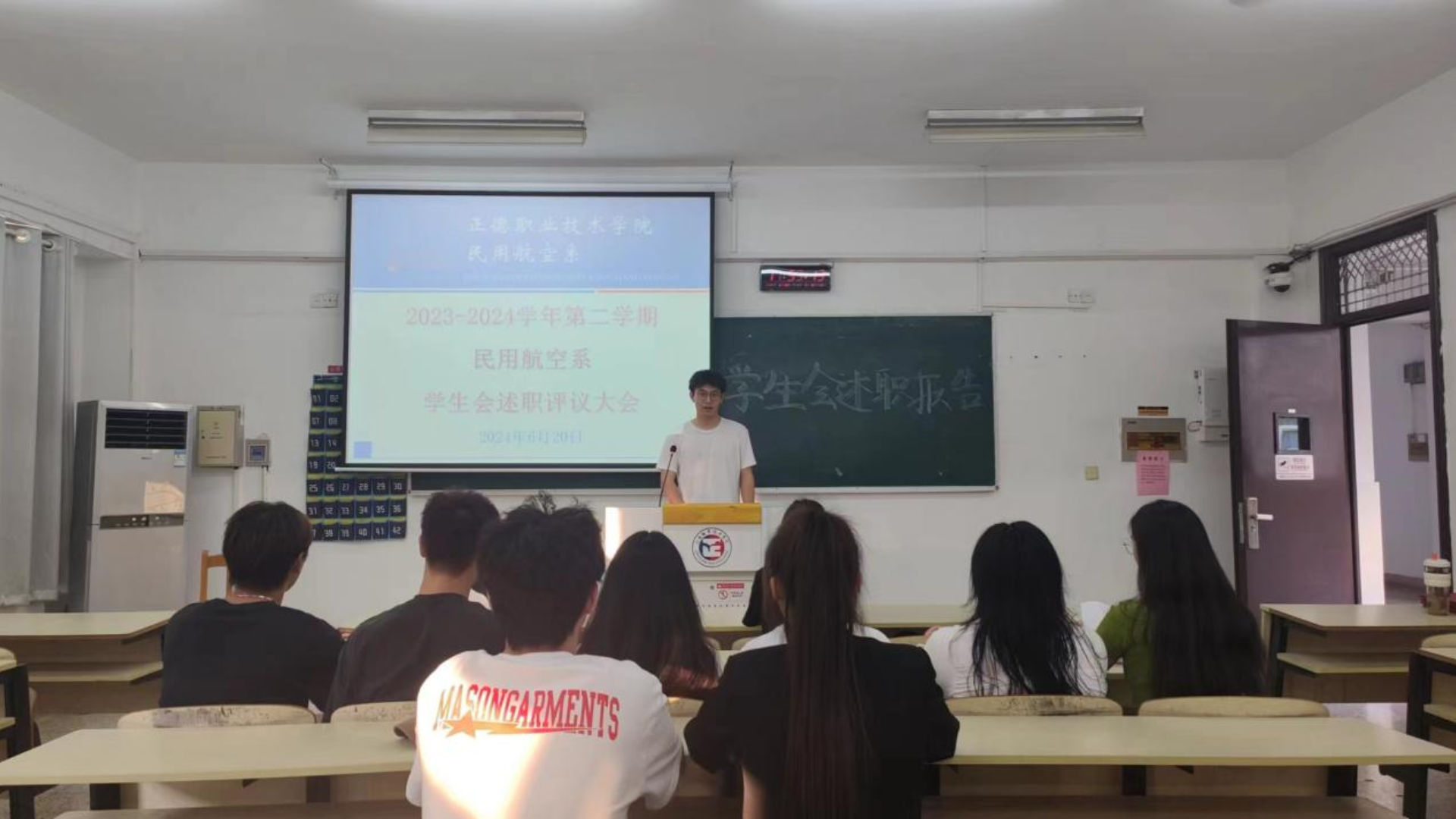 为了进一步促进学生会组织工作制度化、规范化、系统化,发挥学生会联系广大同学之间的桥梁和纽带作用,民用航空系于2024年6月20日在2204举办学生会述职报告大会,团总支副书记顾秀雨、执行主席张俊杰和全体学生会干部参与本次会议。