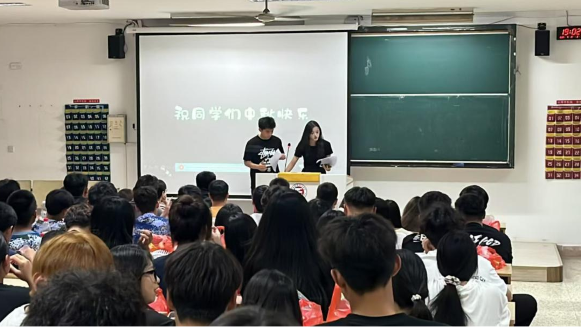 晚会现场朗诵、舞蹈、歌曲等节目一一登场,点燃全场欢快气氛,让同学们没有“独在异乡为异客”,而是尽情享受这欢快时刻。