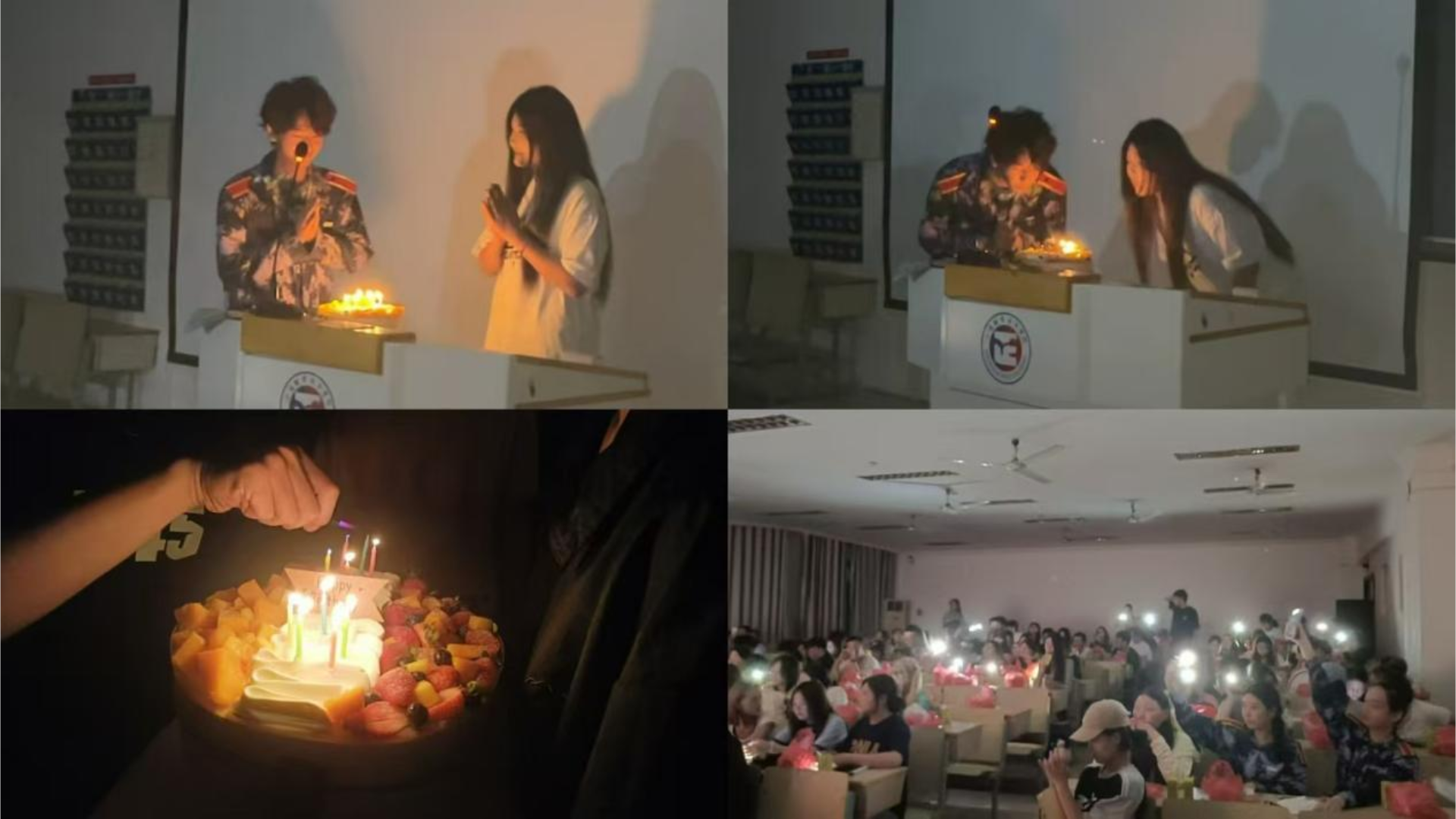 晚会最精彩的内容来自于一份意外的惊喜,民航系在开学初即对所有新生的生日进行了梳理,找了在中秋节过生日的学生名单,悄悄地为他们准备了生日蛋糕,当把这些“蒙在鼓里”的同学请上台,宣布为他们过集体生日时,他们收获了来自民航给予的惊喜,也激动的留下了泪水。全体同学在主持人的号召下与家长发送祝福短信……一幕幕感人的瞬间,一句句动人的语言,一个个感动的瞬间,让此次联欢会增添了无限的感动。