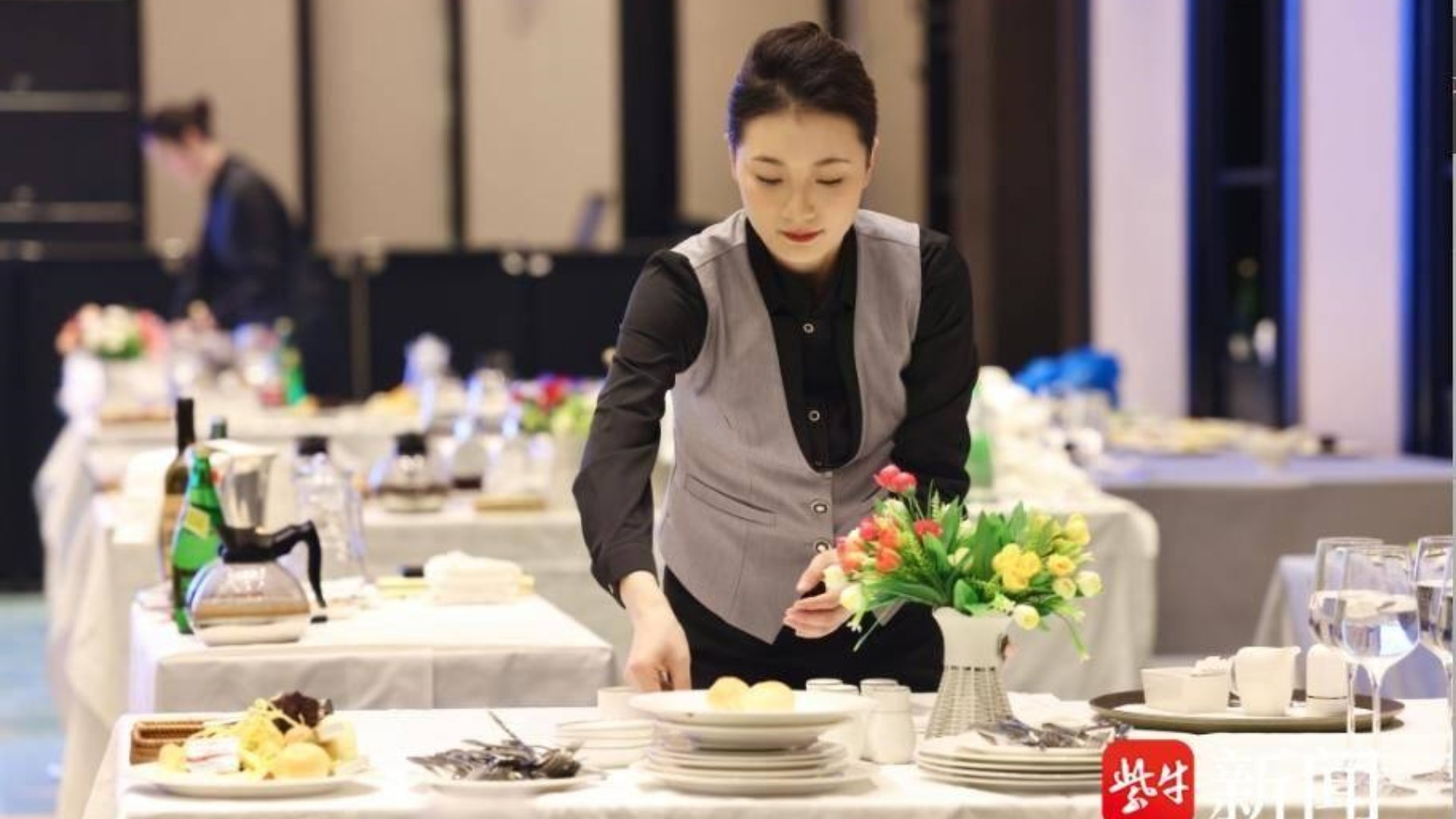 “酒店服务”赛项共分前厅接待、中餐服务、西餐服务三个模块。其中前厅接待为入住登记、退房离店、投诉或突发事件处理三大内容;中餐服务为主题宴会设计、宴会服务两大内容;西餐服务为休闲餐厅服务内容,充分考查酒店管理与数字化运营专业学生的核心技能和相关岗位职业素养。最终,我院选手凭借扎实的基本功、出色的现场表现完成了赛项各项任务,赢得了评委们的认可。