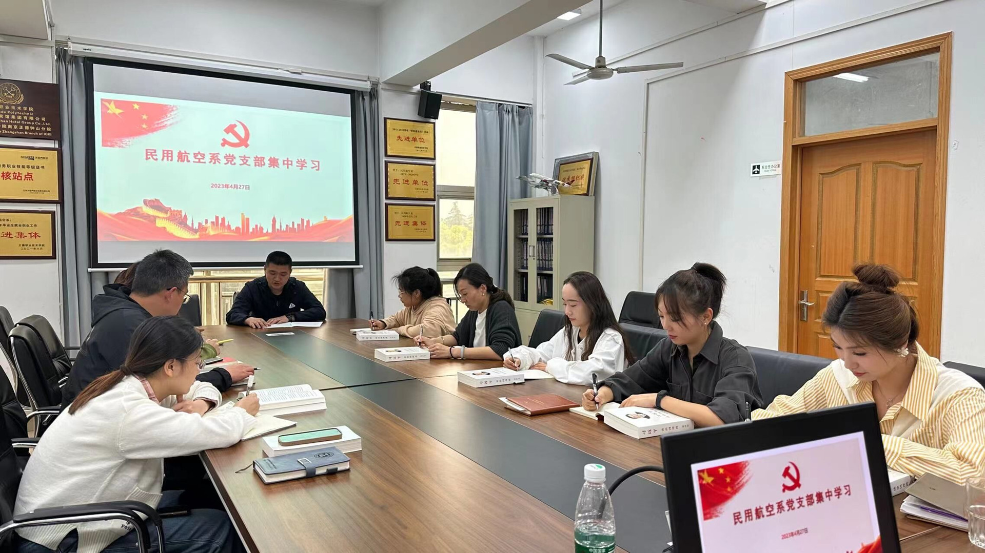 为深刻领会习近平总书记重要讲话精神,学习贯彻新时代中国特色社会主义思想,打牢思想理论基础,引导广大党员同志把党的二十大报告的新思路、新战略、新举措转化为教书育人的新动力。民航系党支部于4月27日组织所有党员集中学习。