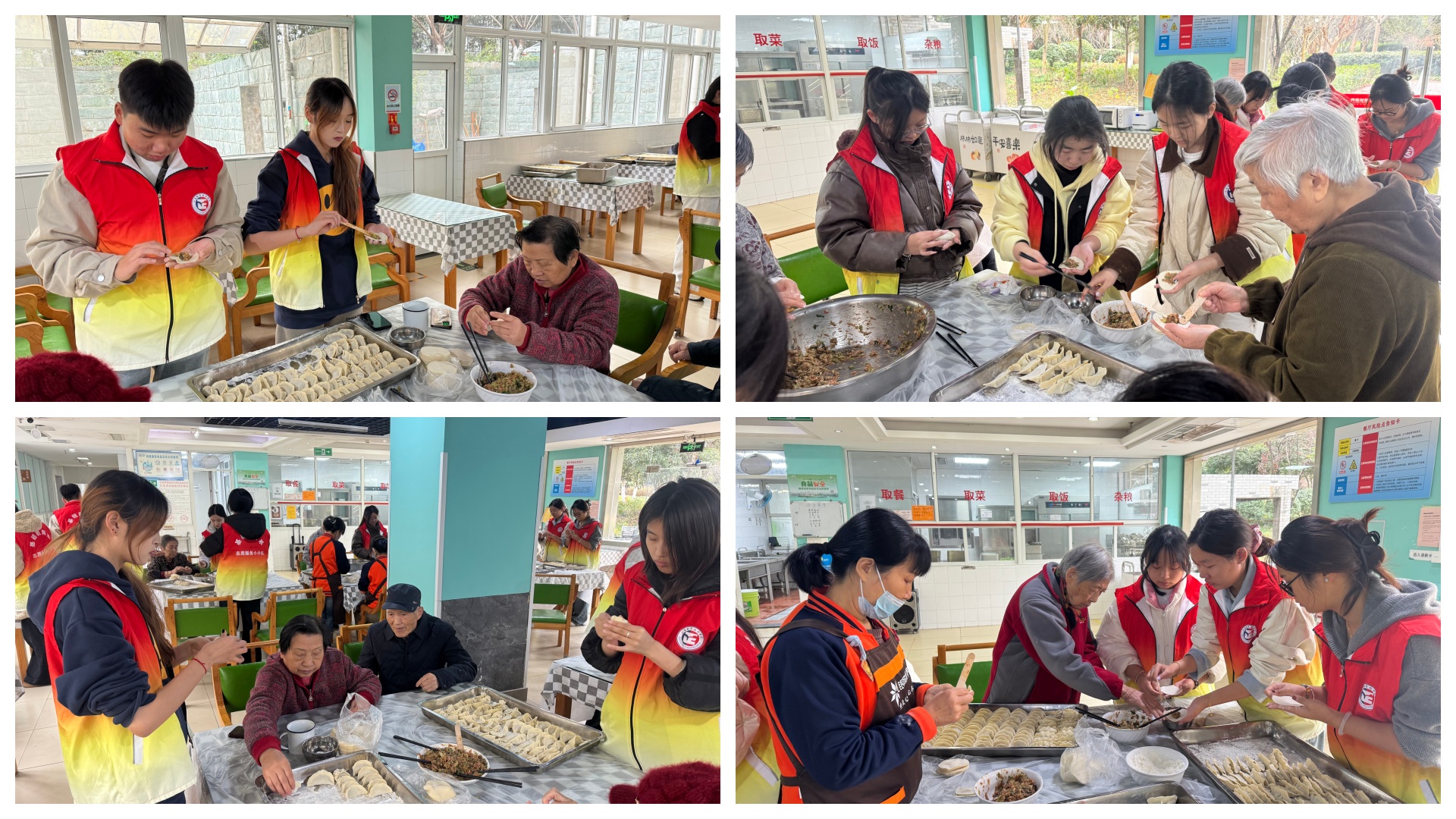 活动当天,志愿者们满怀热情地来到养老院。刚一进门,大家就忙碌起来,养老院的长者们也纷纷加入,有的手把手教同学们捏出漂亮的褶子,有的分享着冬至吃饺子的民俗故事,欢声笑语回荡在活动室里。