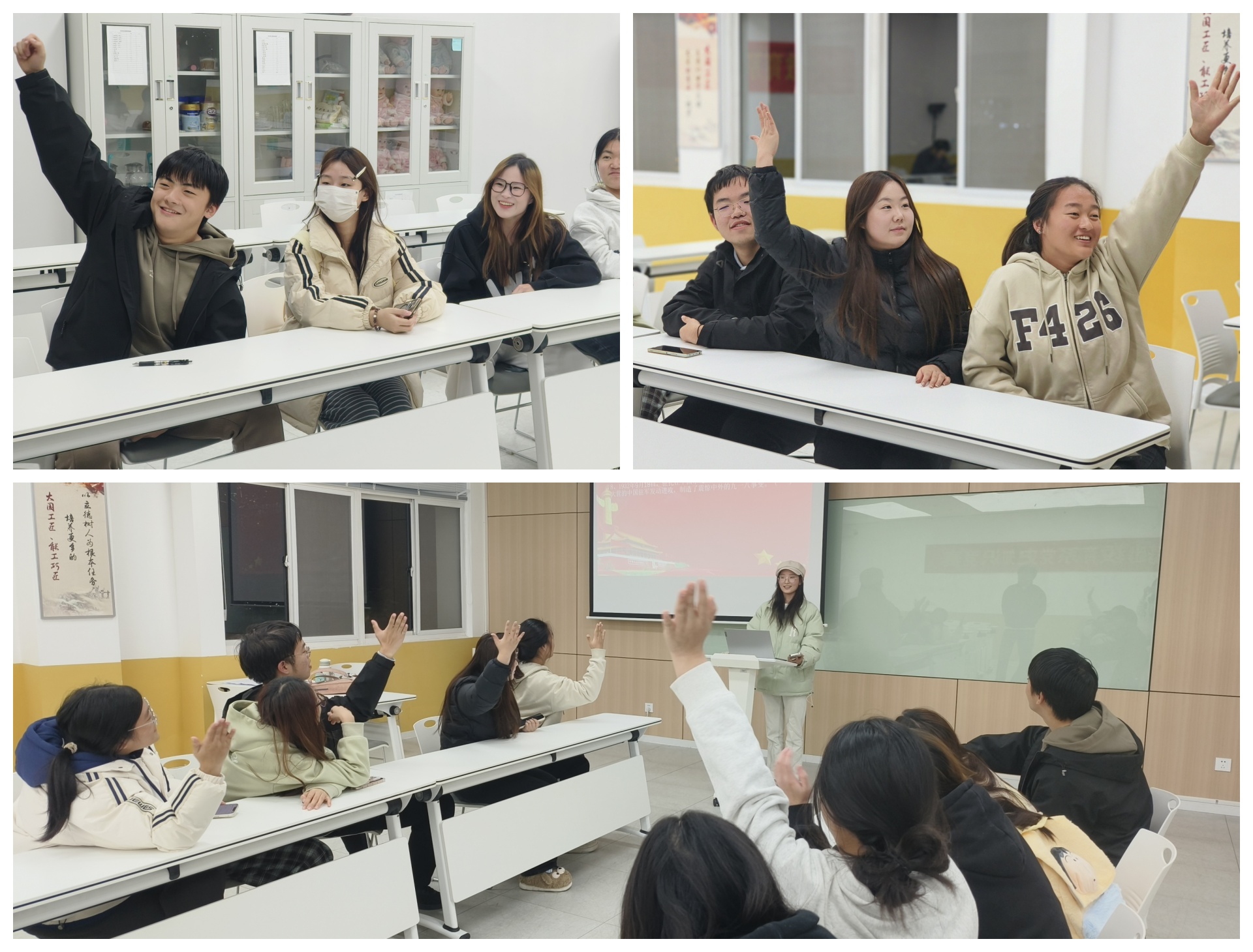 此次竞赛活动围绕党史、新中国史、改革开放史及社会主义发展史为竞赛内容,由年级代表队组成,通过提问抢答的形式开展。在竞赛过程中,同学们积极举手抢答,场面十分热烈,最终由24级代表队获得胜利。