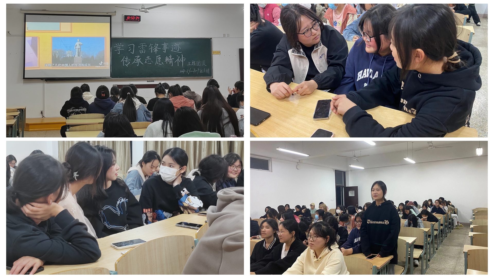 团课开始,各班团支书简单介绍了本次团课开展的意义和基本流程,团课以观看纪录片《永远的雷锋》的形式进行。该片通过采访雷锋班的同志以及当时报道雷锋日记的记者,向大家还原了一个真实的助人为乐、默默奉献的雷锋。通过观看此片,同学们对雷锋同志的无私奉献精神有了更加深入的了解和认识,纷纷表示要以雷锋为榜样,努力践行高尚的品格、无私的情怀。