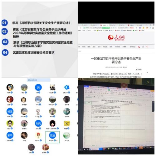 安全无小事,警钟须长鸣,3月31日,艺术设计与建筑工程系在线召开实验实训室安全检查专题会议,具体部署实验实训室安全管理工作,迎接省教育厅2022年高等学校实验实训室安全检查,会议由谢岚主任主持。