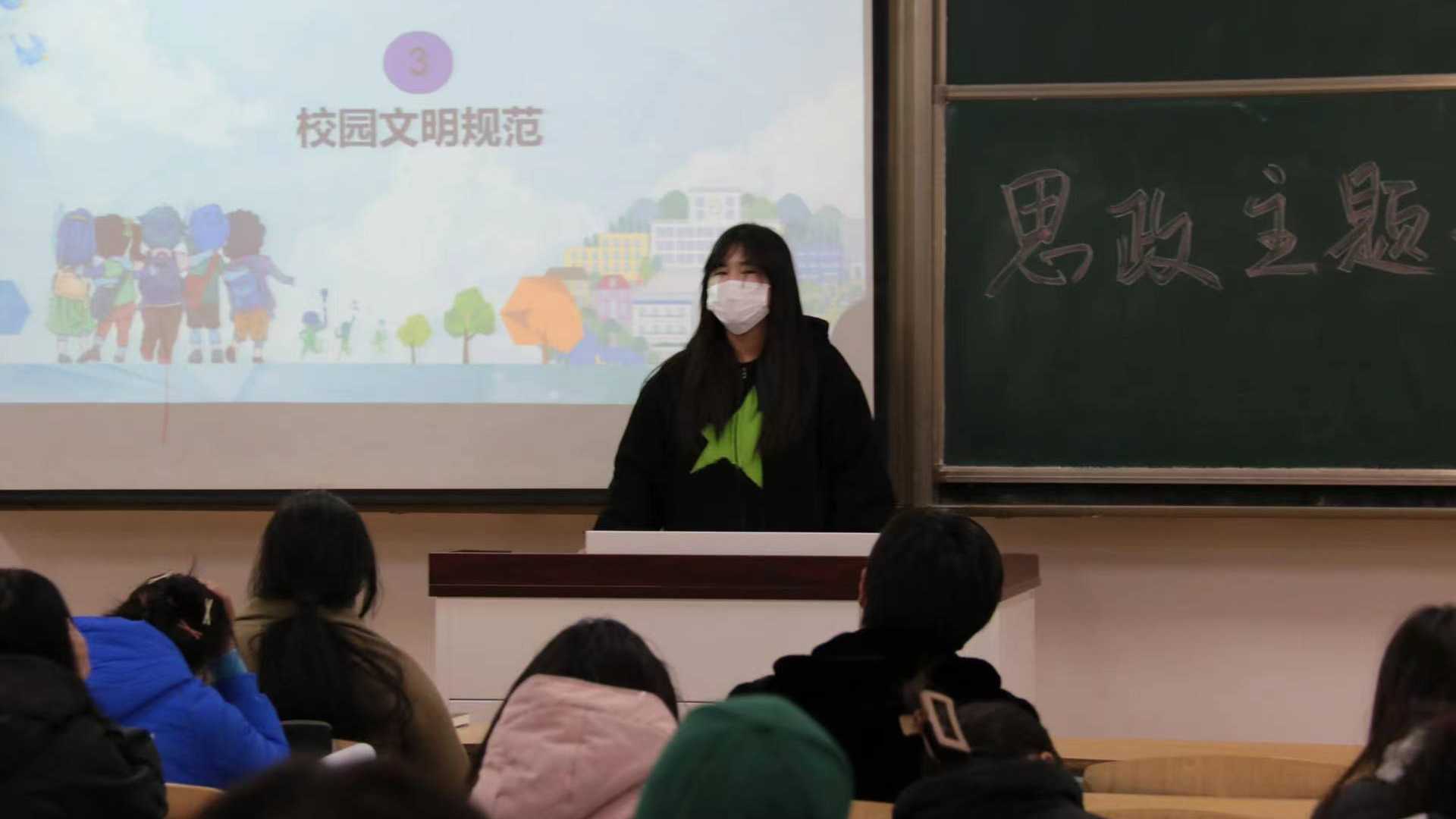 本次系列主题思政课程,分别为现实、理想与中国梦、“四史”故事我来讲、校园不文明现象调查、校园普法实践活动。课程开始时,通过主题引导,向全班同学讲解系列主题理论知识,后由两个班级分小组,在每个主题下进行代表发言,小组代表发言结束后进行提问及交流。