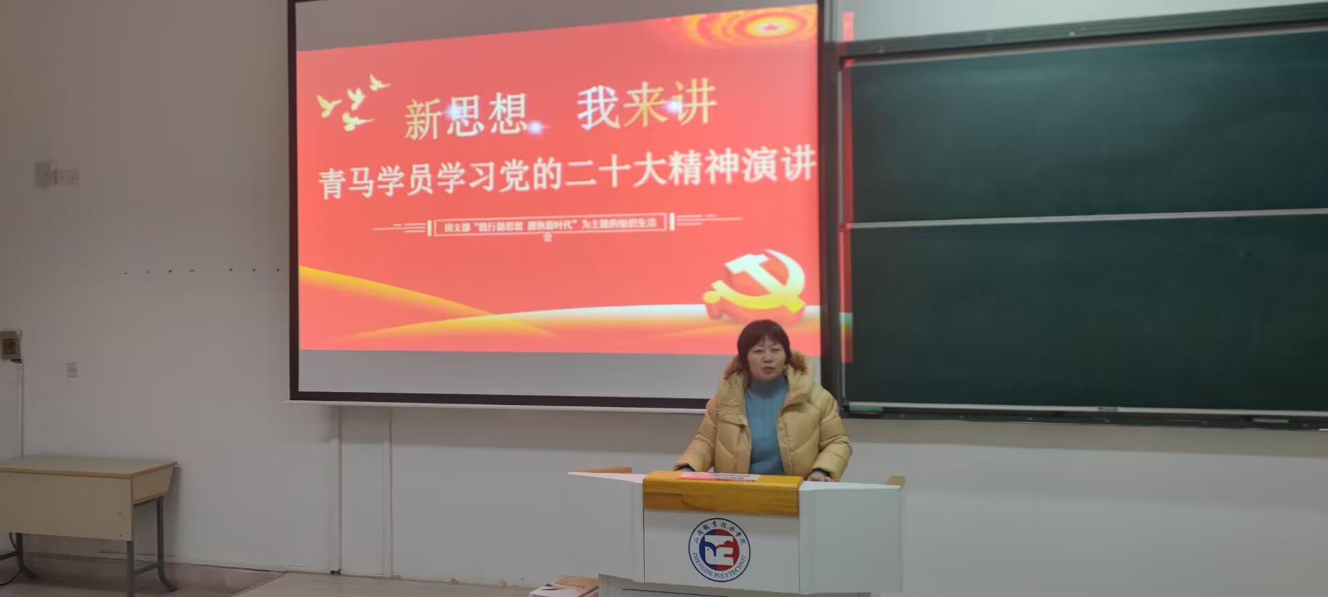百年大党风华正茂,亿万人民自信自强,为引领青年大学生深入学习贯彻习近平新时代中国特色社会主义思想和党的二十大精神,艺建系范小军老师于2月21日在1304教室组织开展“党的二十大精神学习”讲座活动,由范小军老师、吴青老师演讲,环艺、动漫、新闻班全体成员参加。