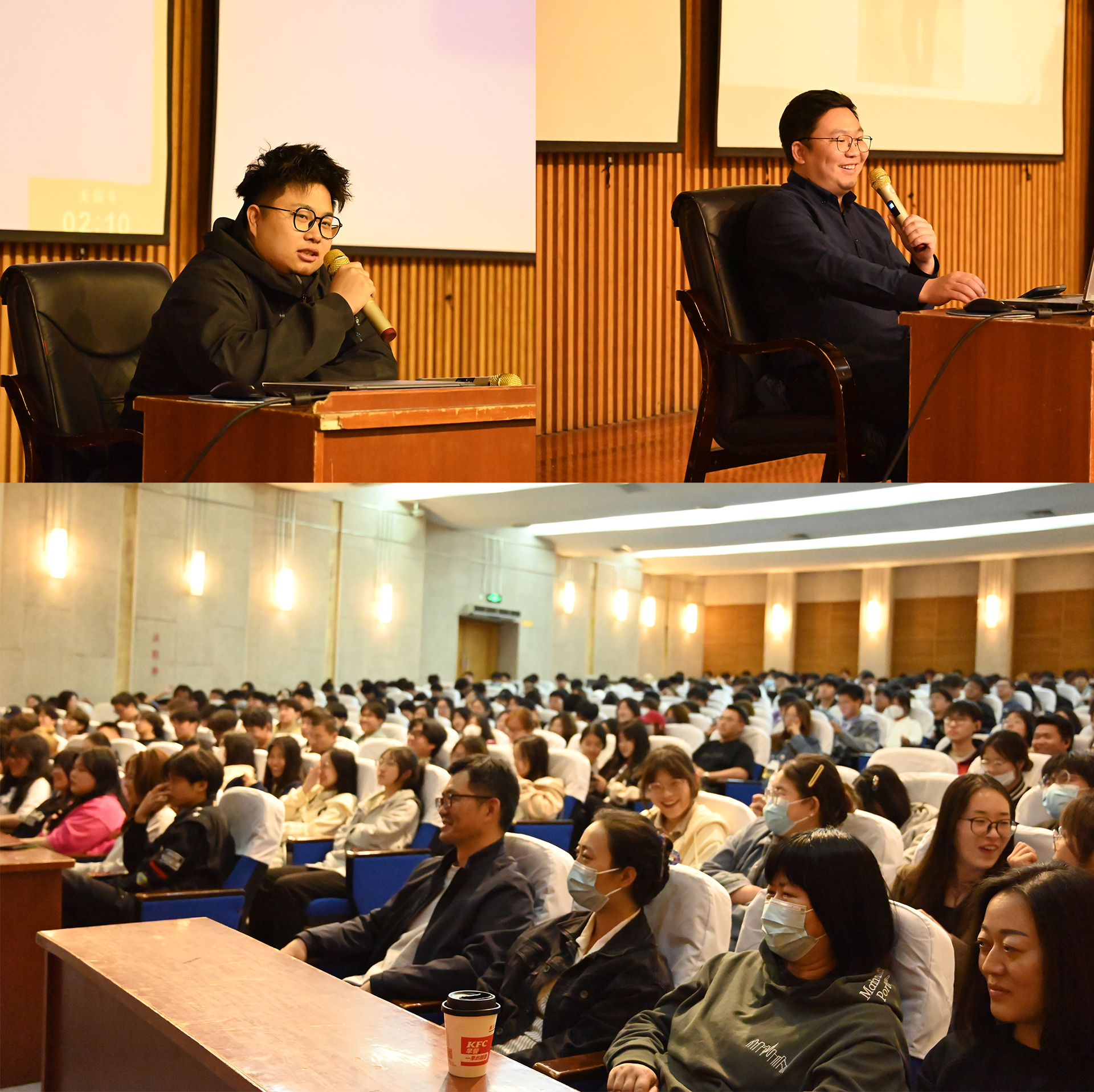 校友吉祥给同学们讲述了他不同寻常的设计师成长历程。作为NeoDesign设计机构的主理人,其成长之路与常规装饰公司、设计院等企业单位的职业人不同,更关注的是行业的最前沿,无论是住宅空间设计,还是商业空间设计,追求原创设计。吉祥同学的讲座主题是“设计师如何自我定位”,主要从自己的成长经历谈起,以聊天的形式分享了自己的经验和心得。特别是对于个人的职业定位,给予了师弟师妹们很多建议,如要博览群书、多出去看看展览等等。
