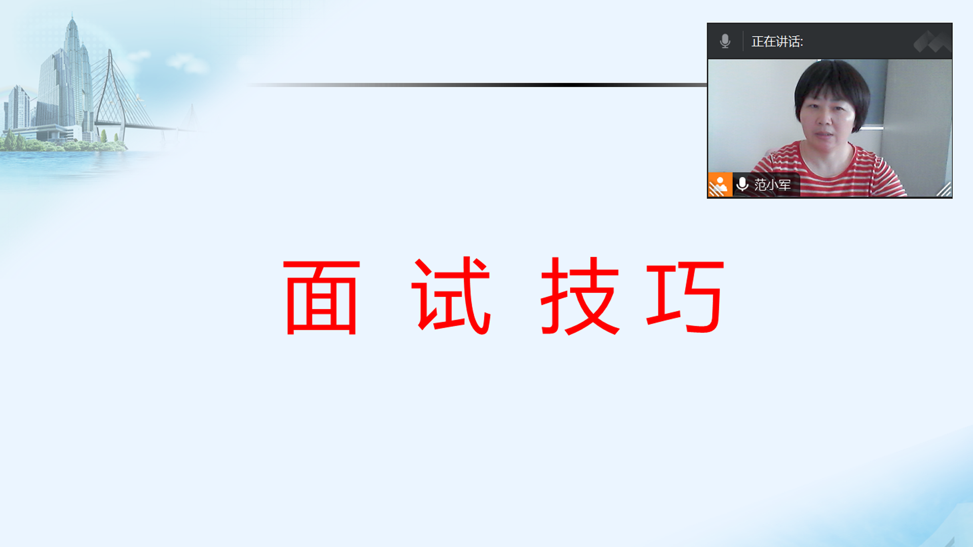 10月17日晚上7点艺术设计与建筑工程系辅导员范小军线上给21级460名同学开展了就业指导讲座,主要围绕学生就业时的面试技巧和面试时注意的问题给同学们作了详细讲解。
