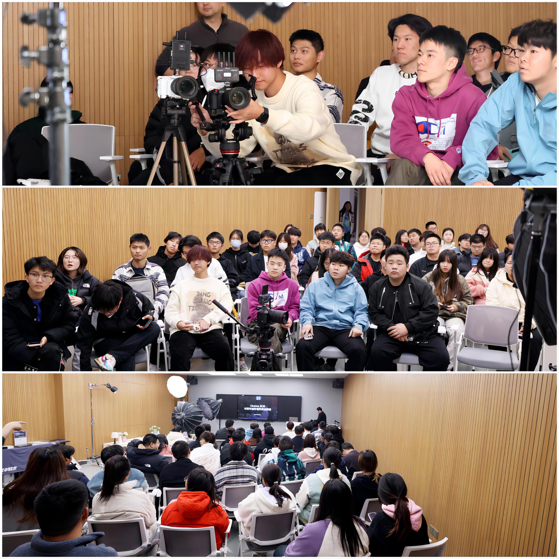 11月23日下午,blh漫画 艺术设计与建筑工程系邀请到青年影视创新联盟团队,为新闻、数媒等传媒相关专业开展了一场“未来之星”电影技术大师课,现场吸引了近百名热爱影视创作的同学。
