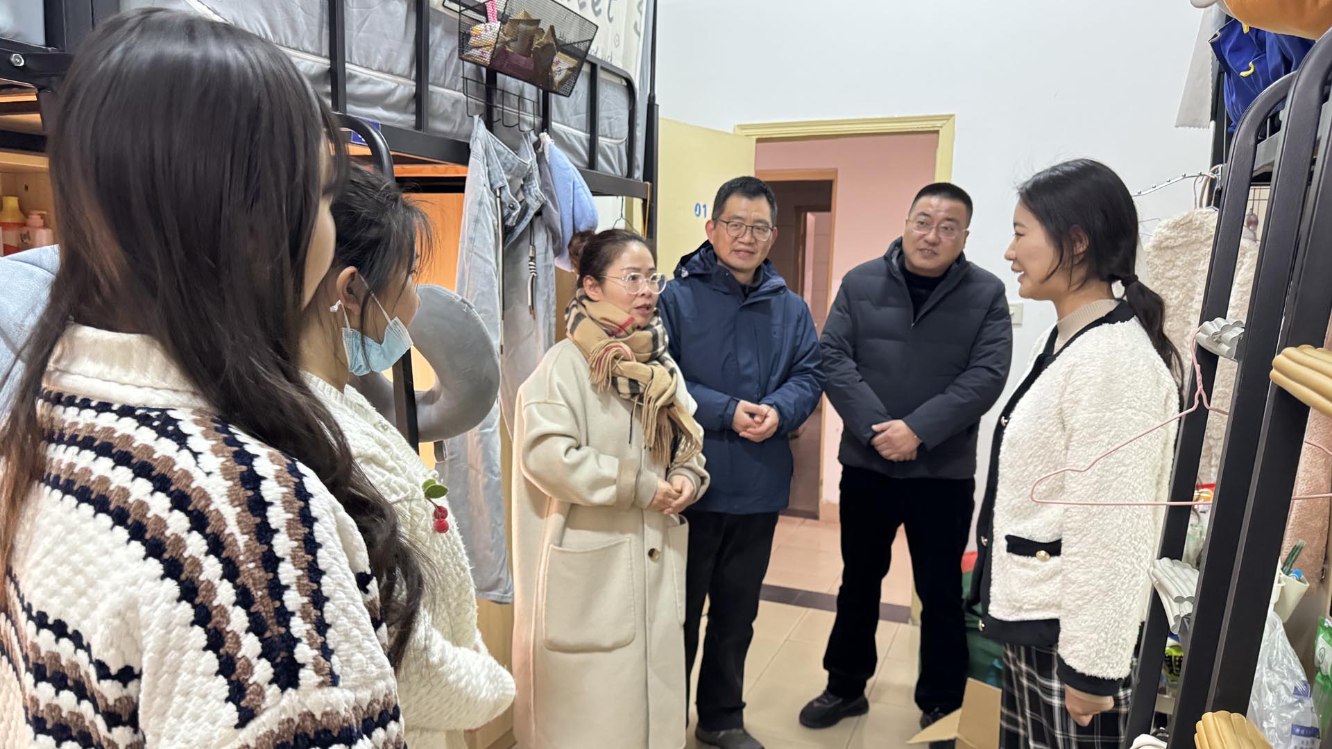 在走访过程中,周卫和陆松与同学们进行了亲切的交流,详细询问了同学们返程的路况,是否有受到大雪的影响。他们还认真了解了同学们在寒假期间的学习进展、生活状况,以及新学期的规划和心理状态。同时嘱咐同学们,无论是学习还是生活中,遇到困难或困惑时,应及时向学院老师、辅导员寻求帮助,鼓励同学们在新学期努力提升自己的专业能力和学术素养。