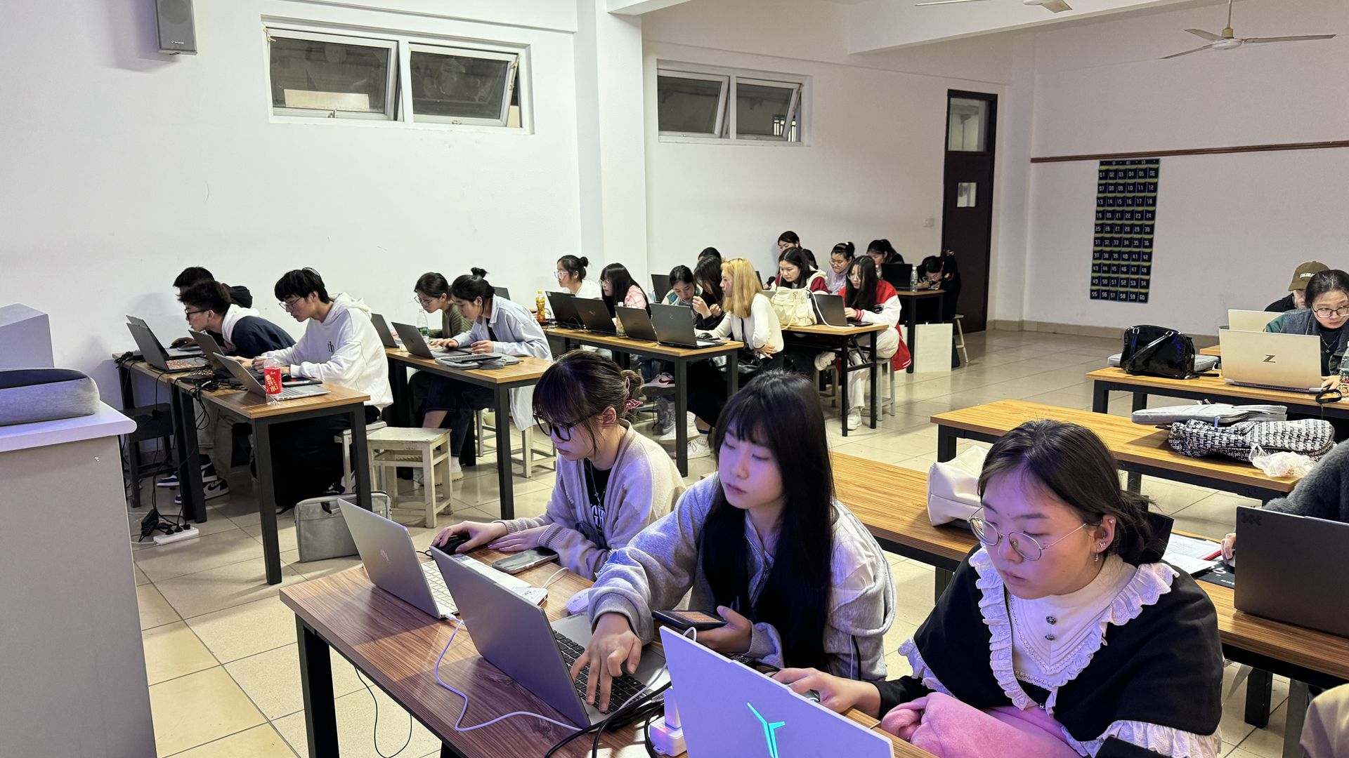23级环境艺术与设计专业培优班学生利用晚自习的时间积极备战计算机一级考试,同学们沉浸在题海中,互相探讨与交流,争取一次性通过考试。