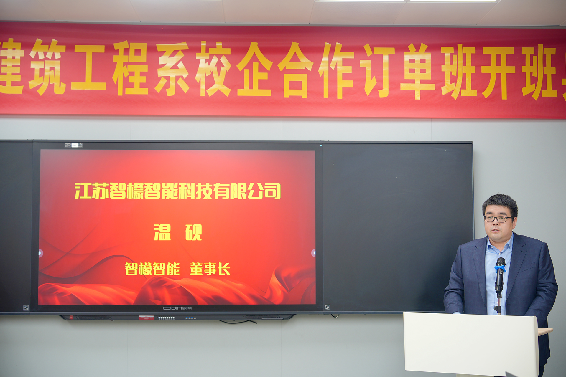 南京铭望装饰有限公司总裁金海在致辞中表示,公司将全力支持订单班的人才培养工作,为学员提供优质的实践平台和学习资源,助力他们成长为行业内的佼佼者。江苏智檬智能科技有限公司董事长温砚也发表了热情洋溢的致辞,他强调,校企合作是实现教育链、人才链与产业链、创新链有机衔接的重要途径,期待双方能在未来的合作中取得更加丰硕的成果,共同推动职业教育和产业的创新发展。
