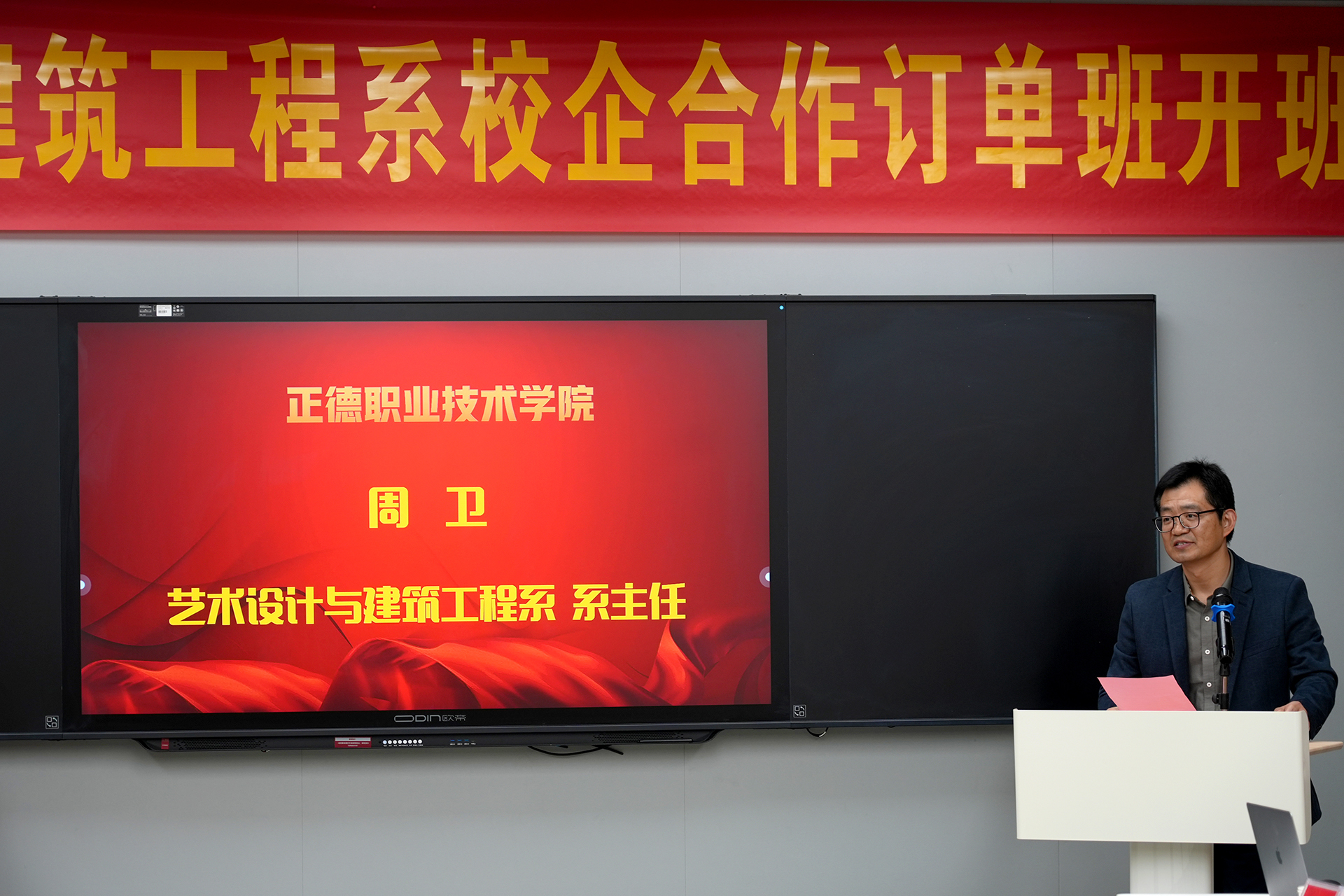 艺术设计与建筑工程系主任周卫上台致辞