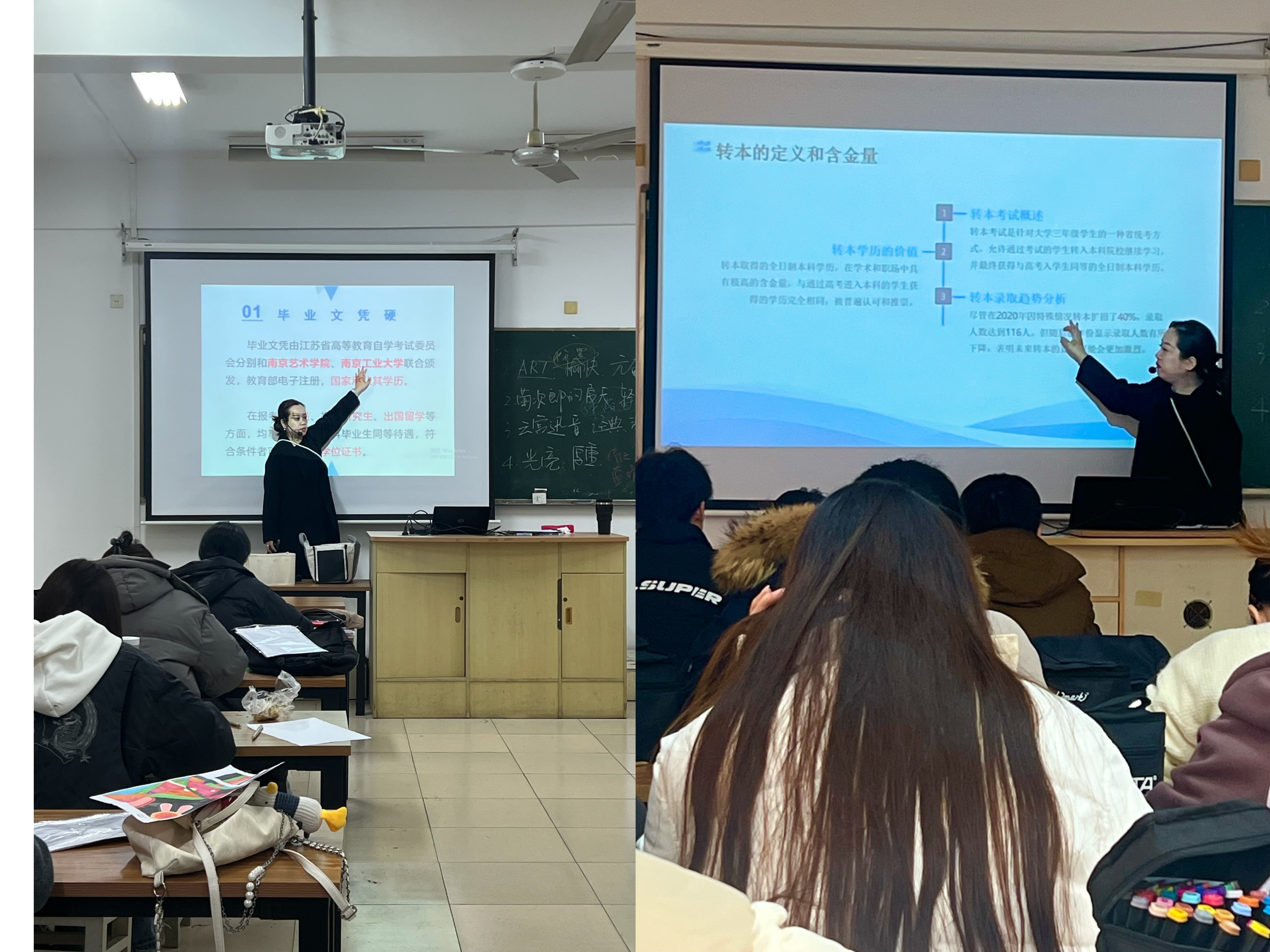 宣讲会伊始,周倩老师首先向同学们介绍了专转本、专接本、升本的基本概念及其区别。她指出,专转本是指通过考试从专科升入本科阶段学习,获得全日制本科学历;专接本则是通过自考形式,完成本科阶段的学习并获得相应的学位证书;而升本则通常指通过成人高考、远程教育等方式升入本科。