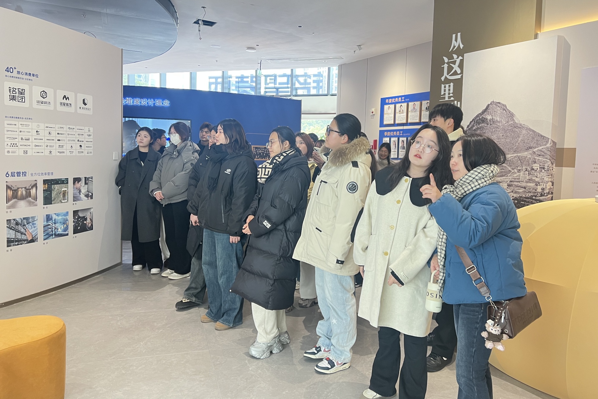 在公司人事主管饶书天的热情接待和细致讲解下,同学们依次参观了铭望装饰有限公司的材料展示区、样板间、设计部门、营销部门以及党建长廊等关键区域。每到一处,饶主管都耐心地介绍公司的发展历程、blh漫画、资质荣誉以及各部门的具体工作内容,使同学们得以全面而深入地了解装饰企业的运作机制和职场环境。