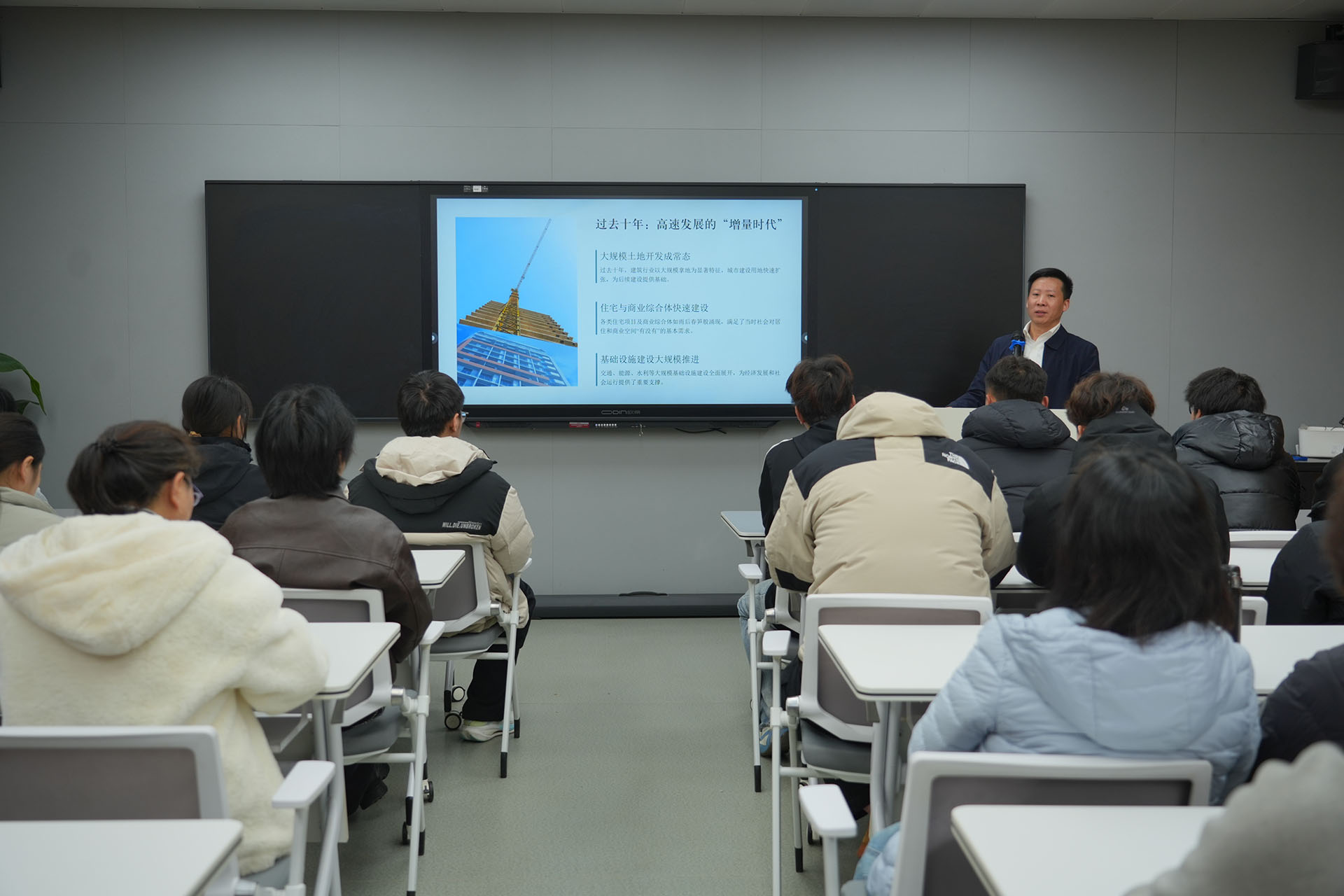 为深化产教融合,助力师生把握建筑行业前沿动态,2025年11月20日,艺术设计与建筑工程系特邀江苏省产业教授、校企合作单位负责人王卿义教授,举办了“解锁建筑行业的无限可能”的专题讲座。建筑类专业师生齐聚一堂,共同聆听行业声音,探索职业发展方向,在汲取专业知识的同时,接受了一场生动的思政教育。