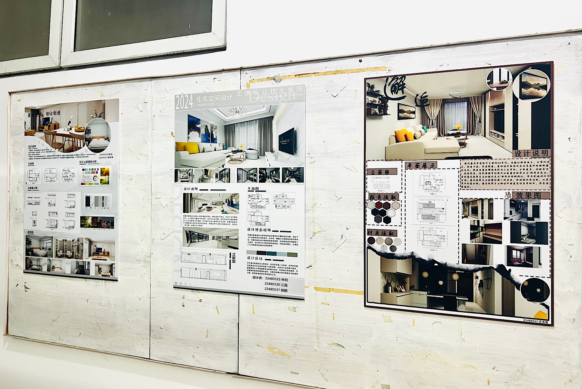 为深入学习贯彻习近平总书记关于职业教育的重要指示,认真落实全国职业教育大会精神,坚持产教融合,将“工匠精神”“精益思想”“课程思政”等元素融入课程教学,也为进一步加强同学们的学习氛围,培养学生创新思维和实践能力。2024年6月5日22级建筑室内设计专业5班《住宅空间设计》课程作业在8号楼三楼走廊展出。