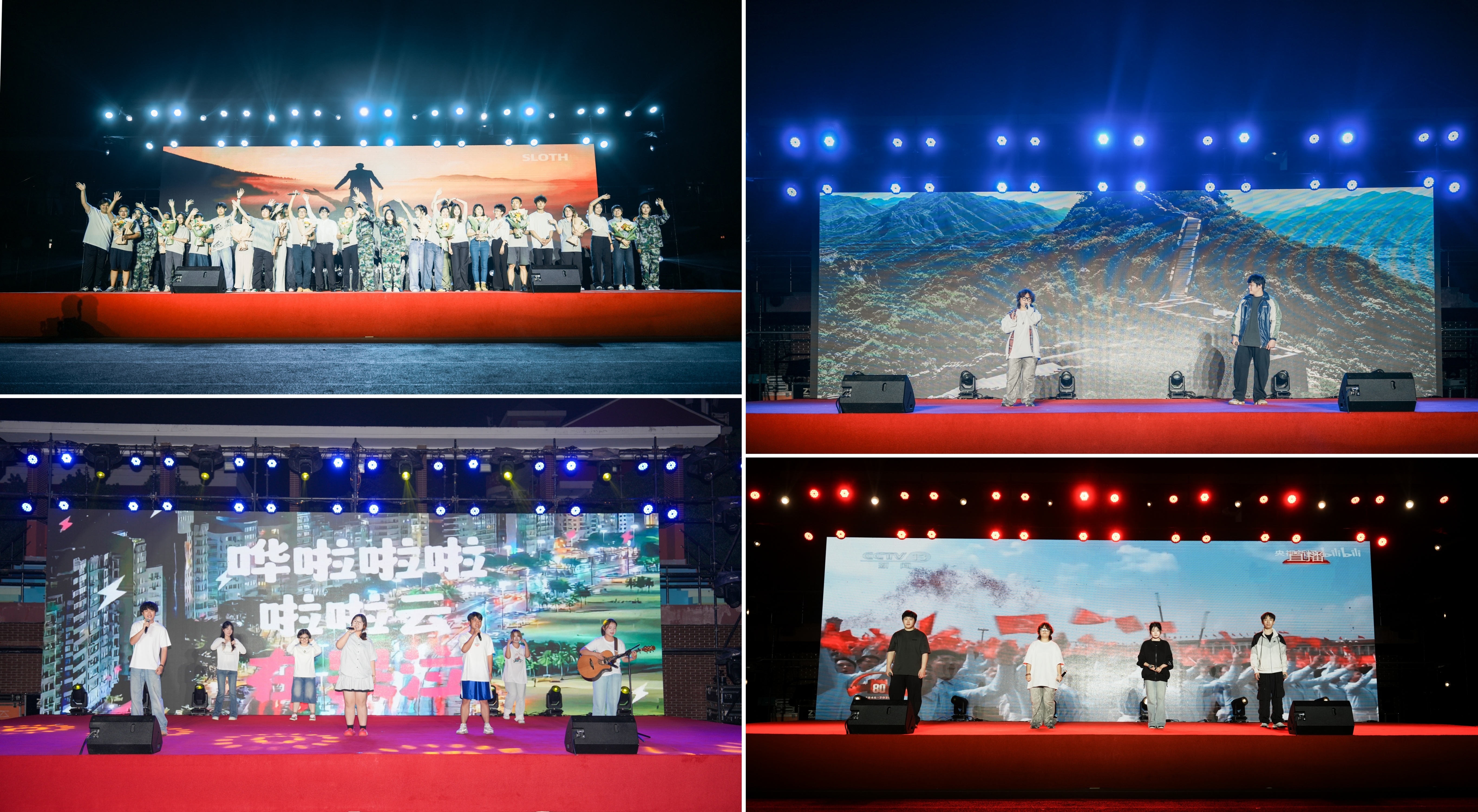 歌曲表演同样精彩纷呈。歌曲《飘向北方》旋律激昂,歌手用深情的嗓音唱出了对梦想的执着追求和对远方的向往,引发了现场观众的强烈共鸣。全体大一辅导员带来的歌曲《我们都是追梦人》将晚会气氛推向高潮,他们用温暖而有力的歌声,传递出对新生们的鼓励与期望,激励着每一位学子在青春的道路上勇敢追梦。