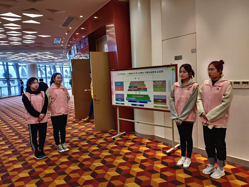 该系志愿者团队受邀参与维持活动现场秩序,团总支学生会主席团成员蒋玮玮、官明天,团总支副书记范承焱早早带领志愿者们来到活动现场。志愿者们沿路设岗,从会场外引领参会人员进入会场,并向参会人员介绍会场分布。会场内外都能看到志愿者们忙碌的身影。