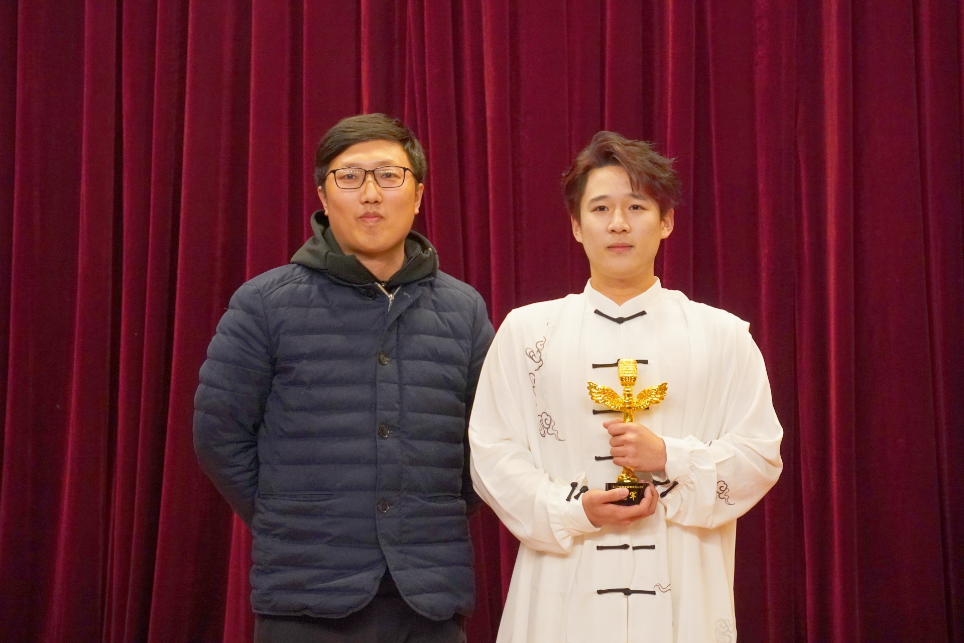 学生处处长祝佳俊老师为冠军(王腾磊)颁奖