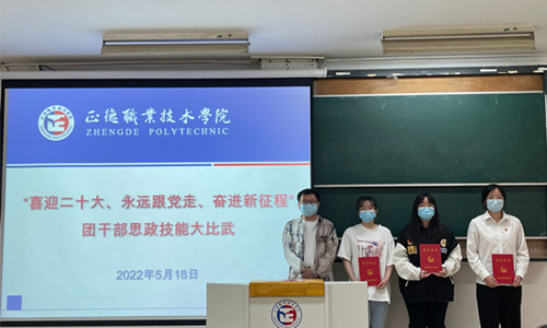 5月18日,我院团委开展 “喜迎二十大、永远跟党走、奋进新征程”团干部思政技能大比武基层团支部书记专项赛校内赛,经过各系初赛选拔的13名选手参加比赛,团委书记黄晓帆和各系团总支书记担任评委。