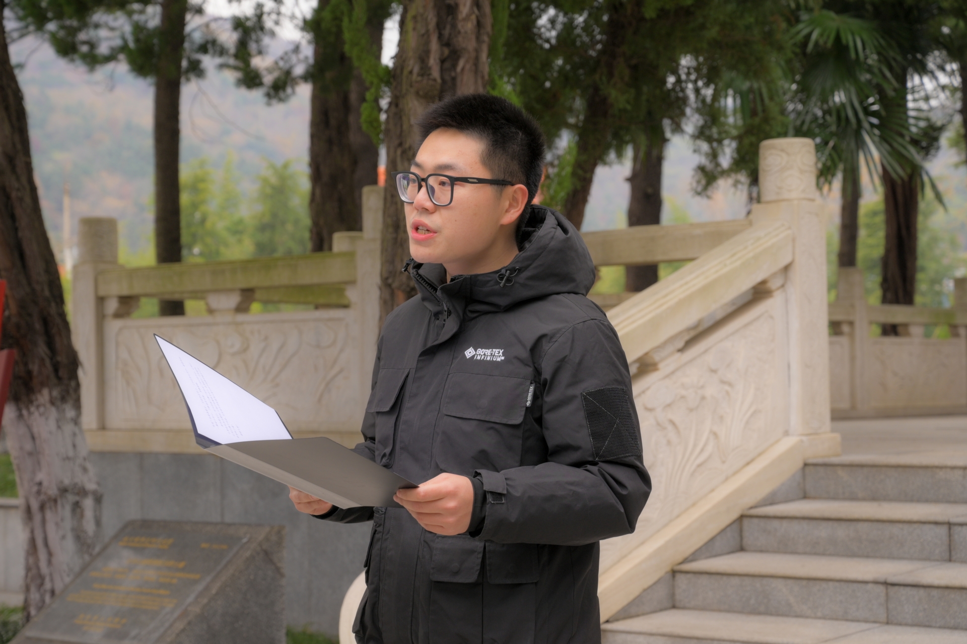 全体成员于纪念碑前肃立,为革命烈士默哀,向先烈们致以崇高的敬意,表达自己对先烈们的哀思。
