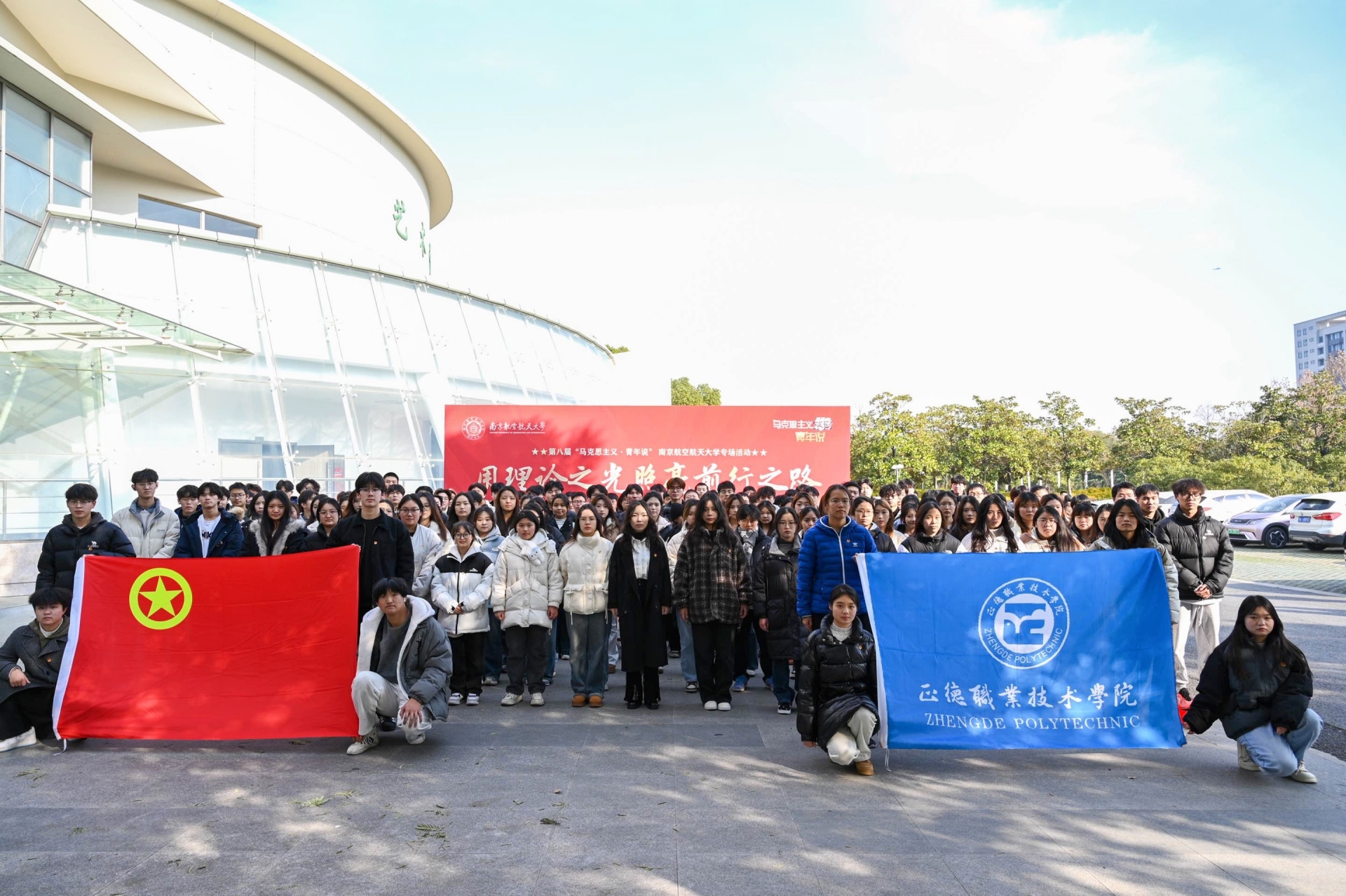 “科技强国,有我!民族复兴,有我!”12月20日,由省委宣传部、省委省级机关工委、省委教育工委、共青团江苏省委、新华报业传媒集团共同主办,新江苏传媒(中国江苏网)承办的第八届“马克思主义·青年说”活动走进南京航空航天大学。为团员青年们带去一场理论盛宴,引导他们在新时代的浪潮中,深刻领悟科学家精神,肩负起推动科技创新、实现科技强国的责任使命。我院团委副书记魏兴彪带领学院第十四期“青马工程”学员和系班团学骨干共150余人参加此次活动。