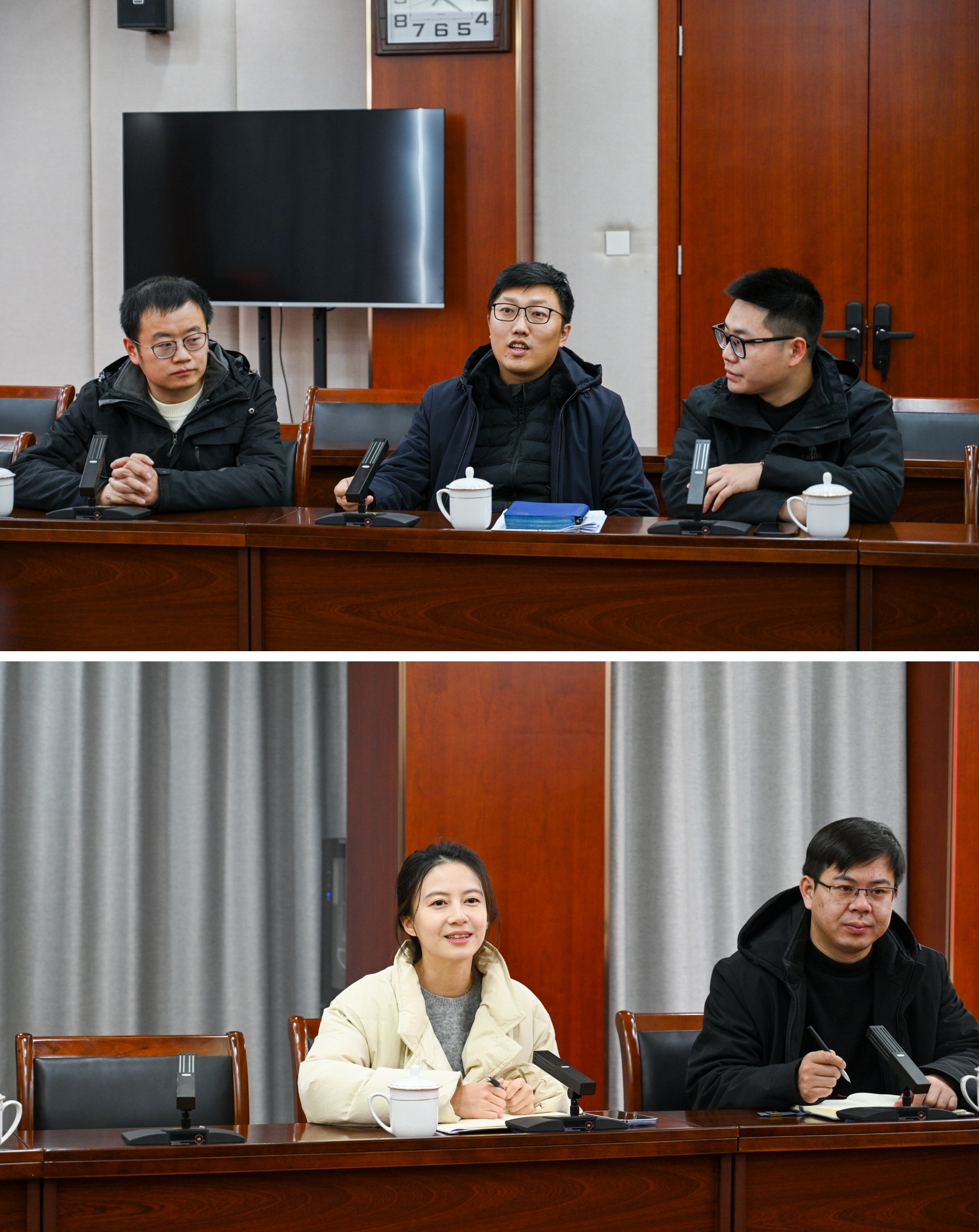 座谈会上,祝佳俊对赵皓月一行的到来表示热烈的欢迎。张皓月详细介绍了社区基本概况、职能分工、发展规划及服务工作的开展情况,重点围绕党团支部共建、人才培养、实习就业等方面进行发言。随后,祝佳俊重点介绍了学院概况、专业特色和师生状况等内容,表示此次高校与社区共建活动,为加强党员党性锤炼、推动师生志愿服务、实现校社协同育人搭建了良好的平台。希望以此为基础,加强双方沟通交流,实现资源共享、优势互补、互助共建,共同探索“高校+社区”共建的实践新模式。黄晓帆就学生志愿活动开展等情况进行了说明,提出“校地共建”协同育人的合作建议,探索打造更多具有校地特色的社会实践品牌项目,满足基层多样化需求,达到党团协同联动、校地双向赋能的目标。