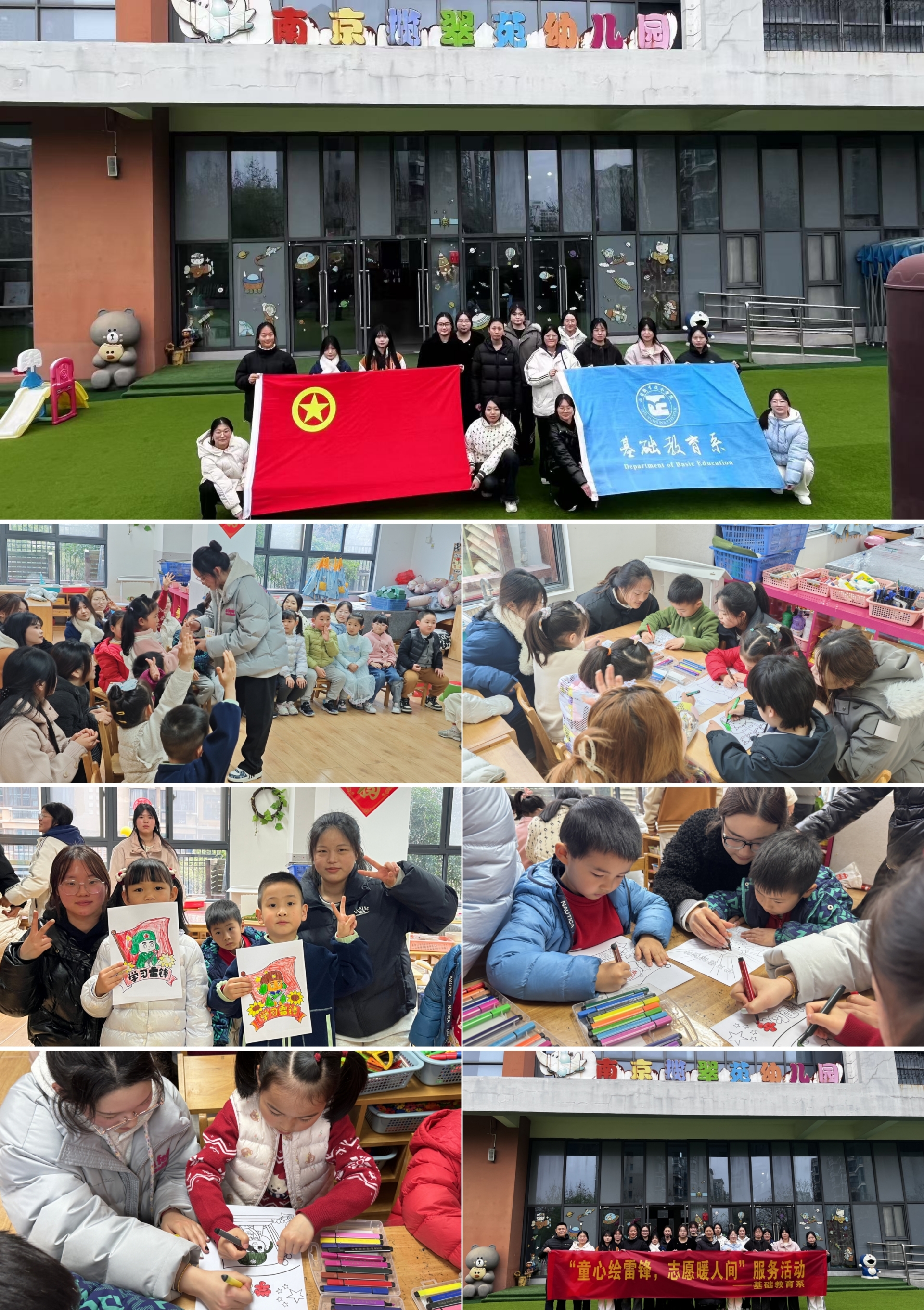 基础教育系组织学生走进南京揽翠苑幼儿园开展“童心绘雷锋,志愿暖人间”主题彩绘活动,活动开始前,志愿者们以色彩斑斓的绘本和活泼有趣的动画视频为开端,让孩子们在轻松愉快的氛围中,重温雷锋的光荣事迹。随后,志愿者们引导小朋友们拿起纸笔,用画笔描绘他们心中的雷锋形象。在这场互动中,不仅让孩子们了解雷锋事迹,感受雷锋精神,还能在实践中培养幼儿的动手和审美能力。未来,基础教育系将继续以饱满的热情,秉持着“奉献、友爱、互助、进步”的志愿服务精神,为学院和社会贡献更多的青春力量。