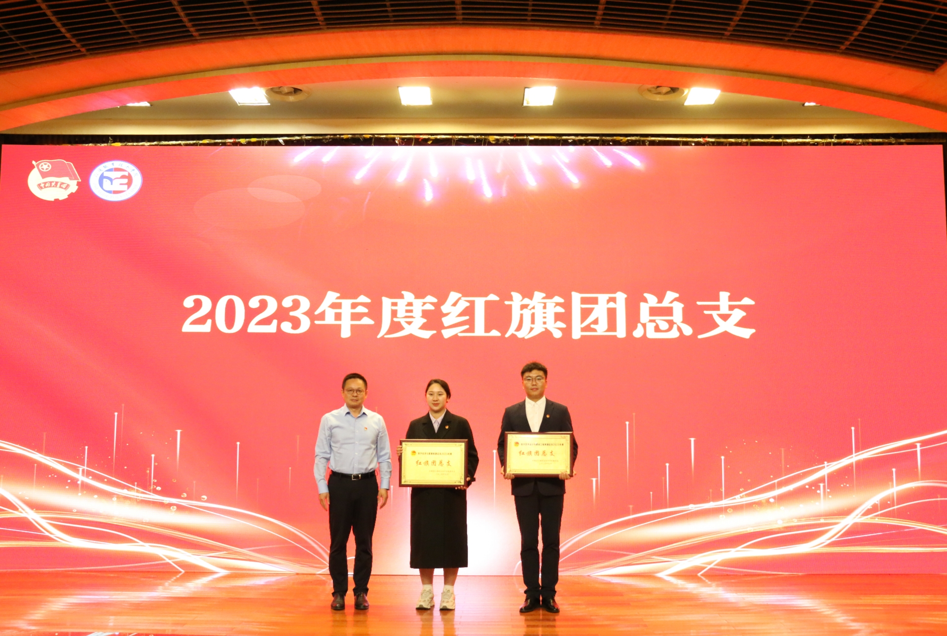 院党委书记、政府督导专员孙雷为红旗团总支颁奖