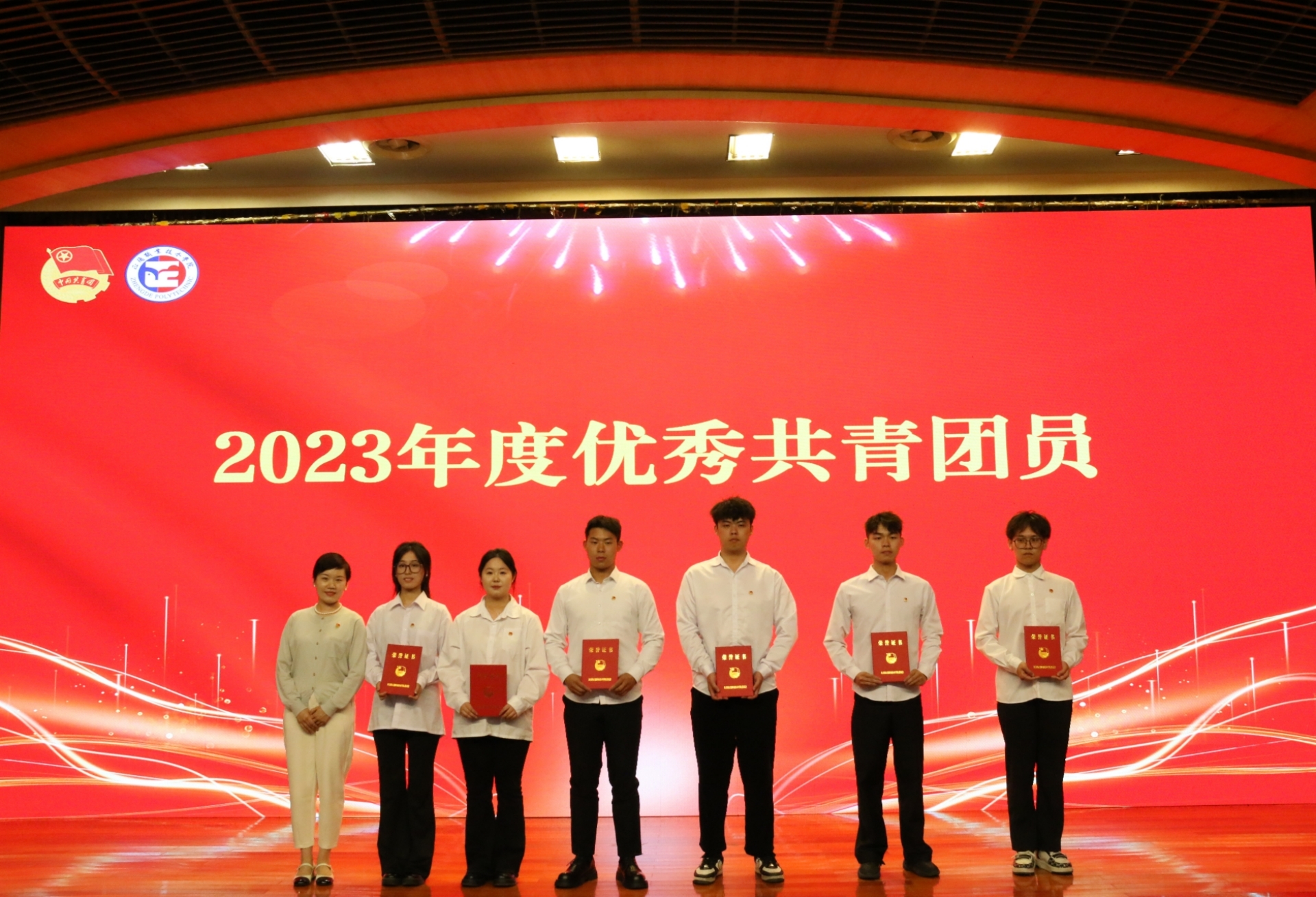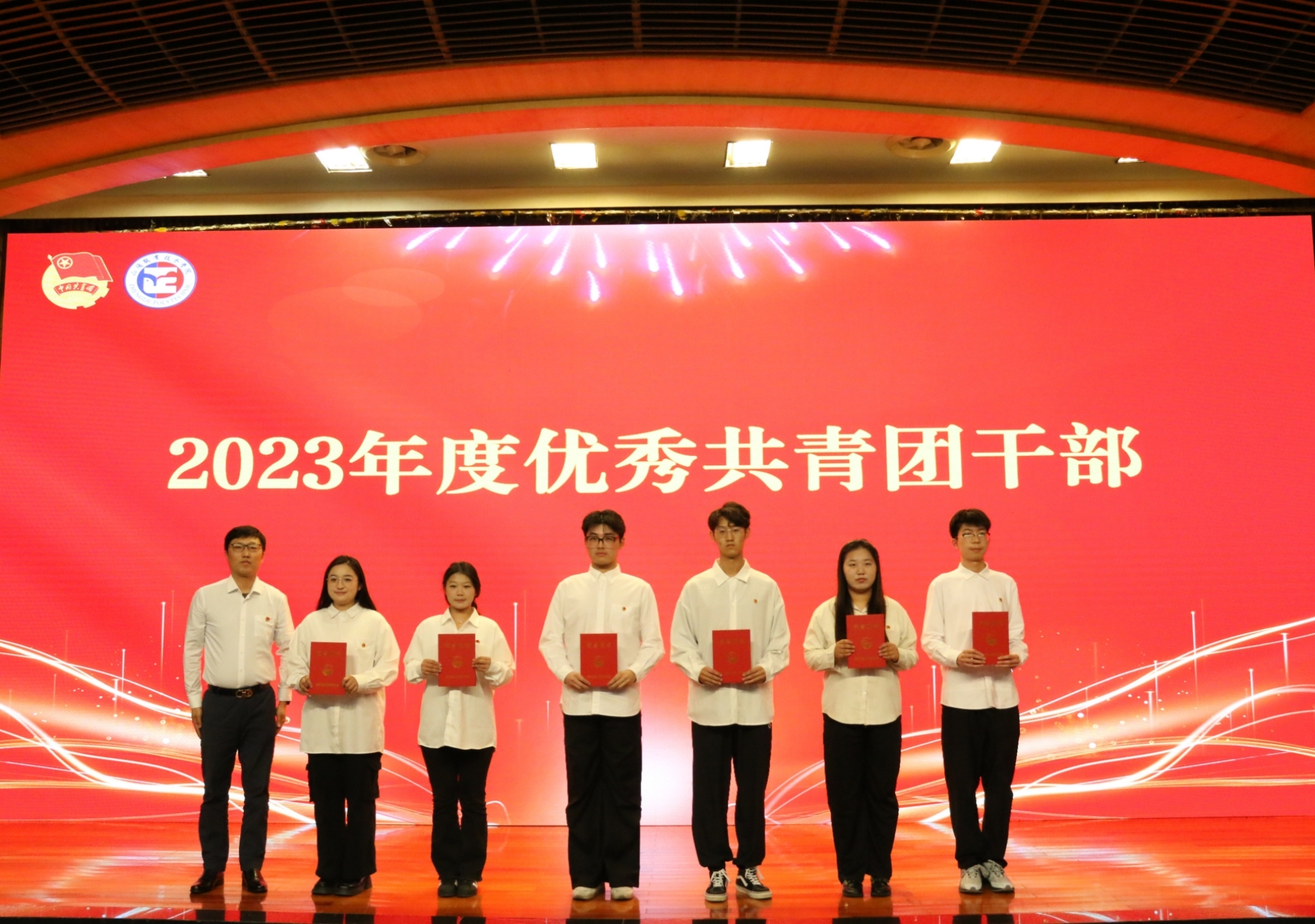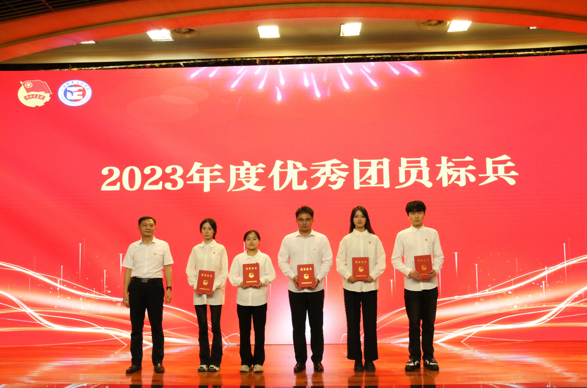 院团委书记黄晓帆宣读《关于表彰正德职业技术学院2023年度优秀共青团员、优秀共青团干部、红旗团支部、优秀团员标兵和红旗团总支的决定》,与会领导为受到表彰的集体和个人颁奖。