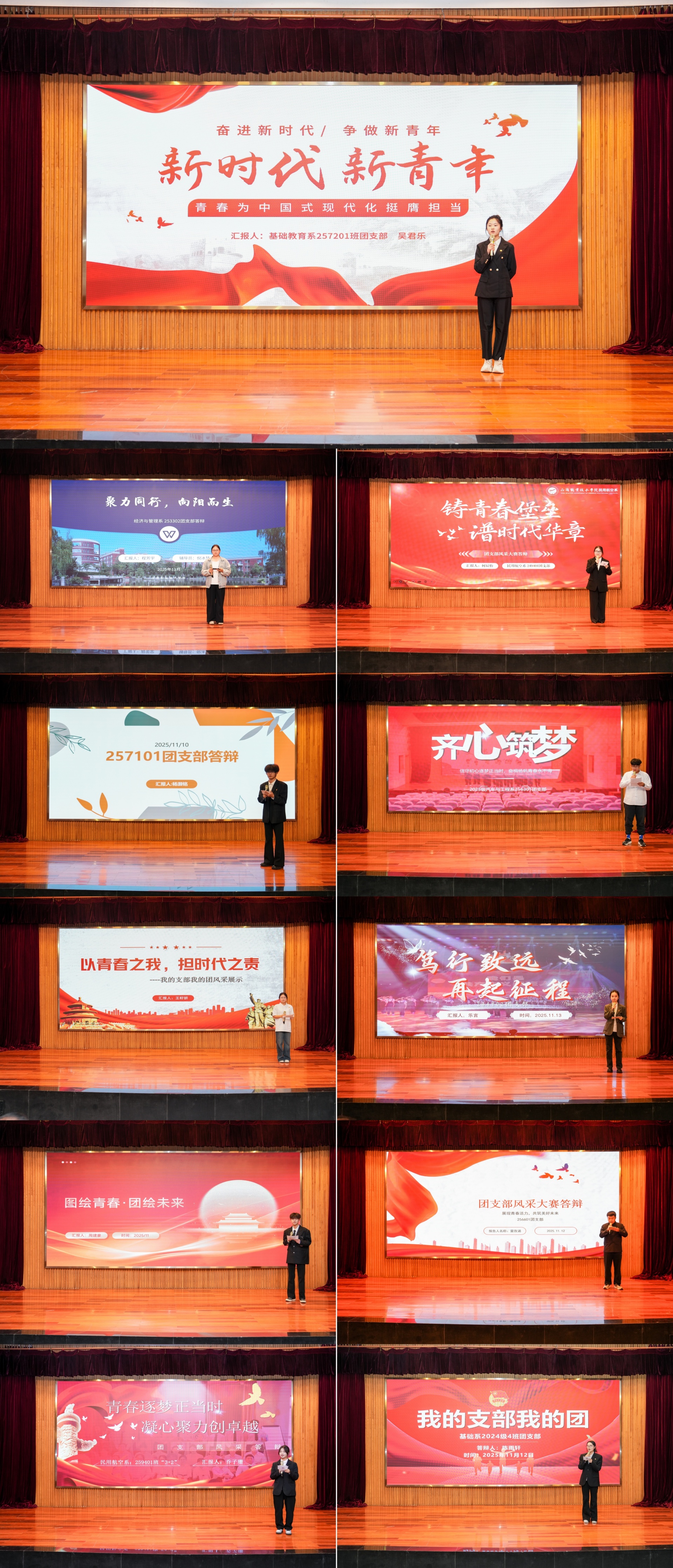评委老师从主题、形式内容、精神面貌、整体形象和舞台效果五个维度对各团支部的展示进行点评,肯定了各团支部的精彩表现。最终经济与管理系253302团支部、基础教育系257201团支部、民用航空系249401团支部、电子与信息技术系251301团支部获得一等奖;汽车与机电工程系256501团支部、电子与信息技术系251204团支部、基础教育系257101团支部、艺术设计与建筑工程系254101团支部、汽车与机电工程系256301团支部获二等奖;经济与管理系253801团支部、艺术设计与建筑工程系244902团支部、民用航空系259401团支部、汽车与机电工程系256601团支部、基础教育系247104团支部获三等奖。