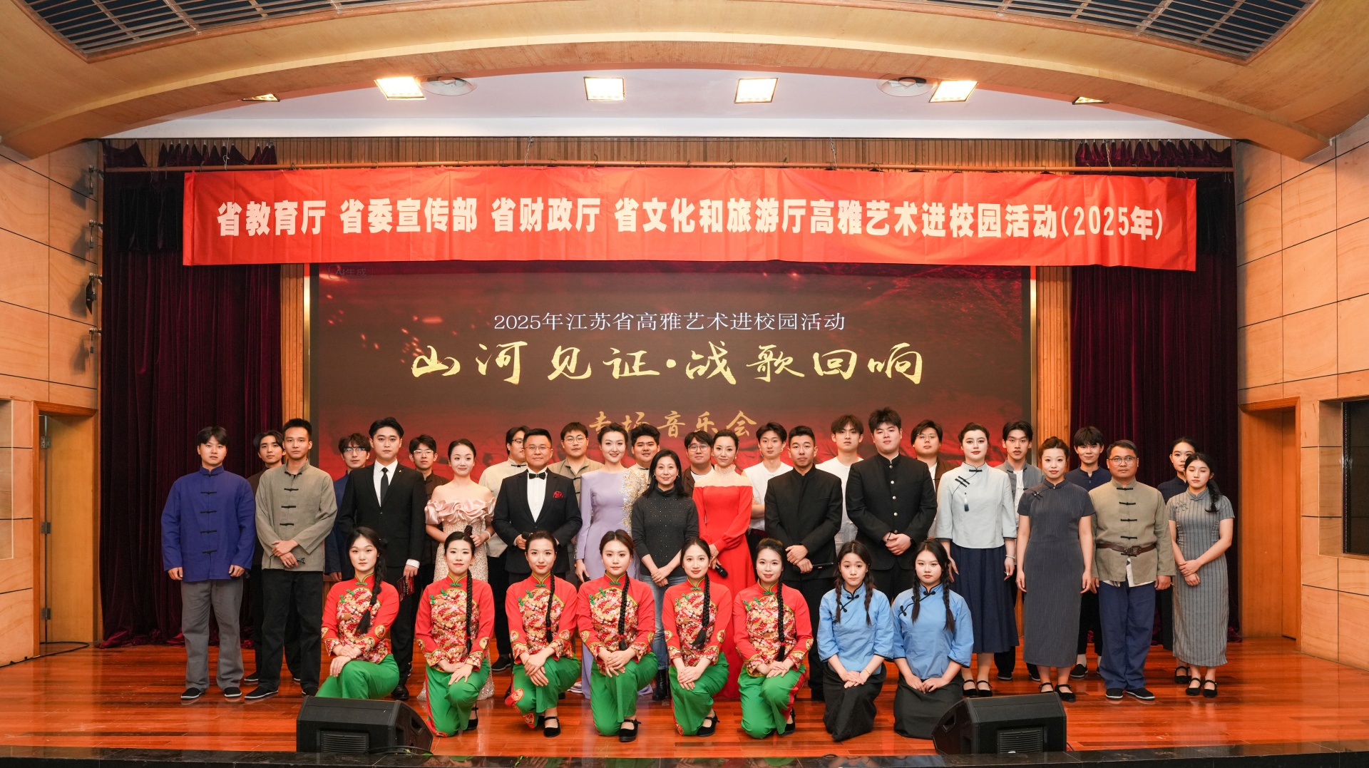 2025年正值中国人民抗日战争暨世界反法西斯战争胜利80周年,为铭记历史、弘扬伟大抗战精神,11月27日,我院联合南京艺术学院在报告厅举办《“山河见证·战歌回响”纪念中国人民抗日战争暨世界反法西斯战争胜利80周年音乐会》,现场350余名师生共同观看这场震撼心灵的音乐盛宴,在经典旋律中重温烽火岁月,接受了一场深刻的爱国主义教育。