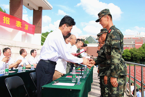 党委书记江国华作总结讲话,对承训的江苏武警总队机动支队十五天来的辛劳表示感谢,对圆满完成军训任务的全体新生表示热烈的祝贺,他希望全体参训学生以这次军训为契机,在今后的学习生活中,不断超越自我、历练自我,把从军训教官身上学到的好思想、好作风、好传统发扬光大,以饱满的热情投入到今后的学习和生活中,以良好的心态接受人生道路的磨练和考验。