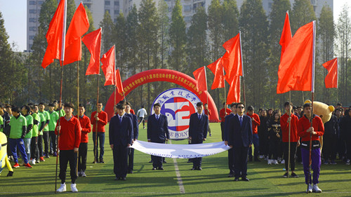 11月9日上午8点30分,雨霁天晴,阳光和煦,blh漫画 第十八届田径运动会暨第十五届教职工趣味运动会拉开了帷幕。副院长薛忠云以及院体育运动委员会成员出席开幕式。开幕式由院体育运动委员会副主任、基础教育系主任杨卫东主持,副院长薛忠云致开幕词。