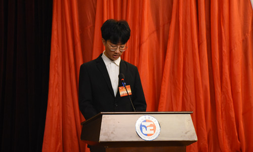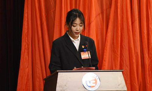 江苏经贸职业技术学院学生会主席杨娜代表兄弟高校向大会致贺辞,江苏省学生联合会执行主席韩沛宸代表省学联向大会的召开表示热烈的祝贺,对我院学生会工作给予了高度的认可和肯定,同时对学生会进一步改革发展提出了希望和要求。他强调,一要遵循党的领导,坚定理想信念。二要凝聚青春力量,规范思想意识。三要挖掘自身优势,明确职能定位。学生会成员要始终牢记全心全意为同学服务的宗旨,用情怀书写青春,用真诚服务同学。