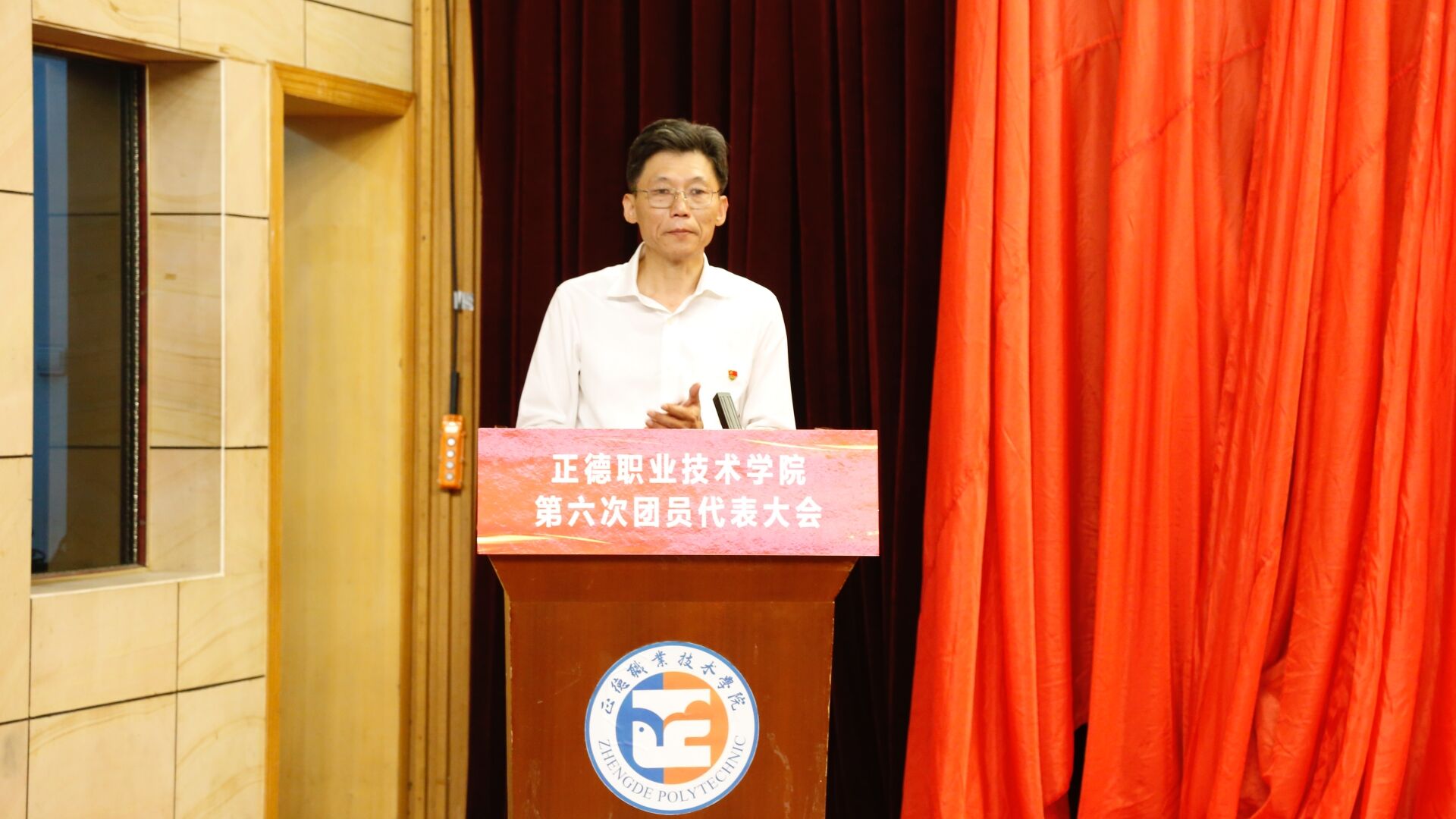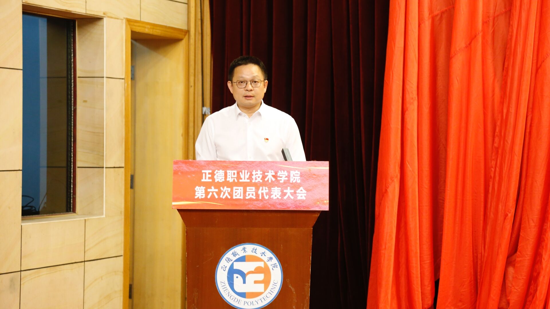 孙雷代表学院党委向长期以来关心支持我院共青团事业发展的团省委领导、兄弟高校同仁表示衷心的感谢,对广大团员青年、团干部、团组织提出三点希望:一是要始终志存高远,在坚定信仰中砥砺青春品格。每一个正德青年都应该在这个技术技能人才发展的黄金时代,勇于承担历史使命和时代责任,把个人成长融入时代发展,为推动强国建设贡献自己的青春力量。二是要提升能力素质,在知行合一中彰显青春风采。要树立梦想从学习开始,事业靠本领成就的观念,不断提升自身的认知水平和技术技能,做一个德技并修、知行合一的时代新人。三是要强化“改革之力”,在团结奋斗中凝聚青春力量。坚持“政治建团、思想立团、固本兴团、改革强团、从严治团”的思路和原则,发挥共青团的桥梁纽带作用,真正建设“青年身边的共青团”。