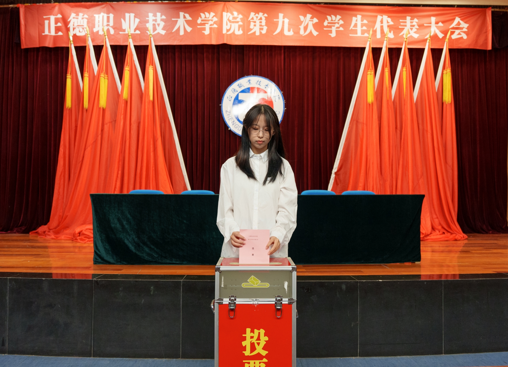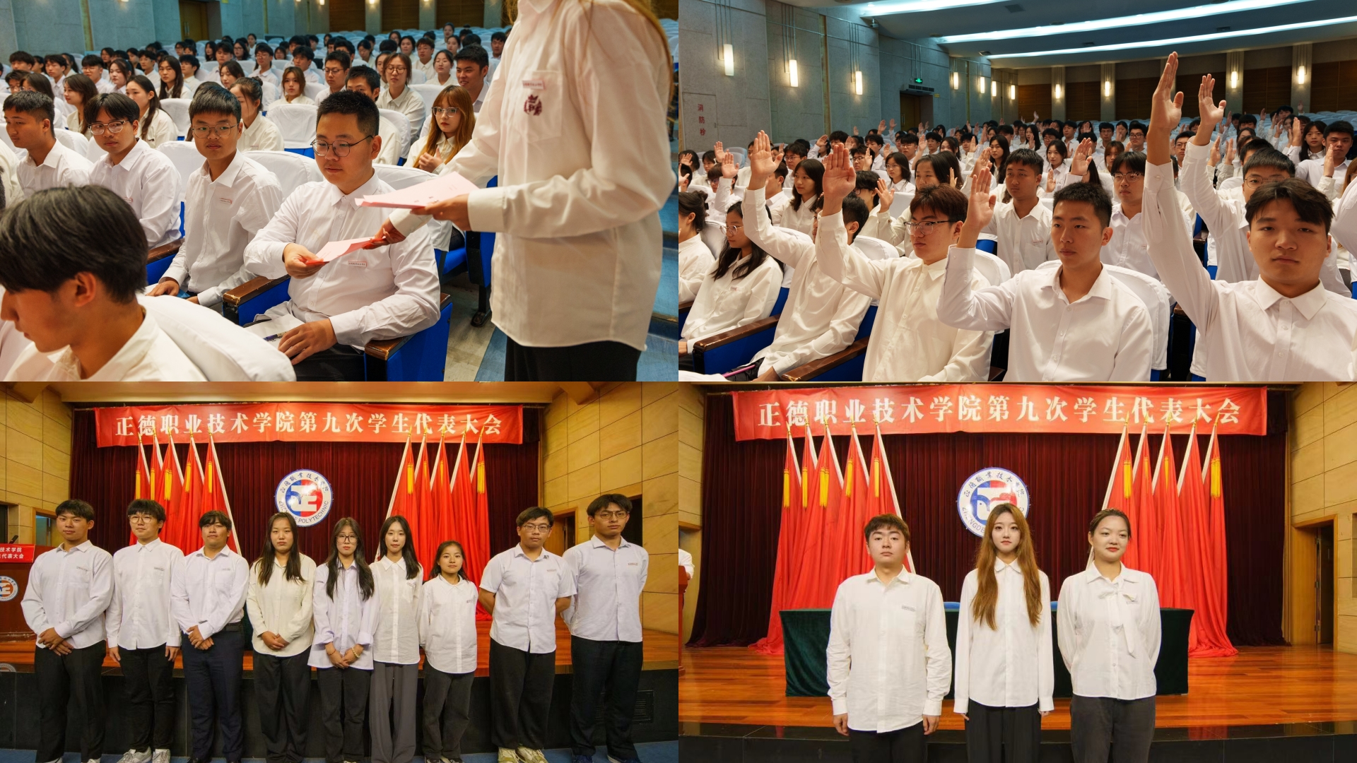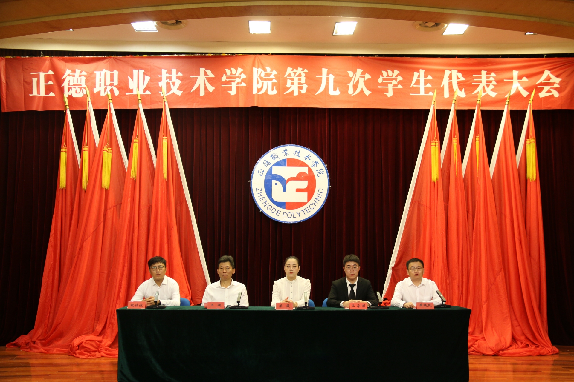 9月23日正德职业技术学院第九次学生代表大会在报告厅召开。院党委副书记、副院长梁薇,院长助理王健、党委学工部部长祝佳俊、各系党支部书记及团总支书记出席开幕式,团委书记黄晓帆主持开幕式。江苏省学生联合会驻会执行主席王海彭同学、金肯职业技术学院学生会主席施幼幼同学到会祝贺,全省36所兄弟高校学生会对大会的召开发来了贺信、贺电。全院121名代表参加大会,履行学生代表职责。