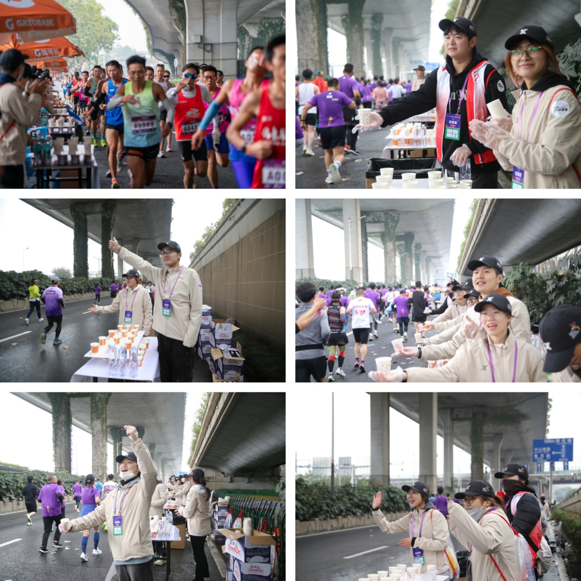 早上8点左右,第一梯队的专业选手们在赛事车辆引导下率先经过我院志愿服务点位,所有志愿者或是竖起拇指或是鼓掌、呐喊,为参赛选手们加油鼓励。领跑方阵过后,是络绎不绝的群众参赛选手,志愿者们不厌其烦得引导选手们及时前往各服务台补充所需。不少参赛选手对志愿者们投以微笑,并对他们的服务表示感谢,赞扬他们的贴心,选手们的肯定与支持是对志愿者工作的最大鼓舞。