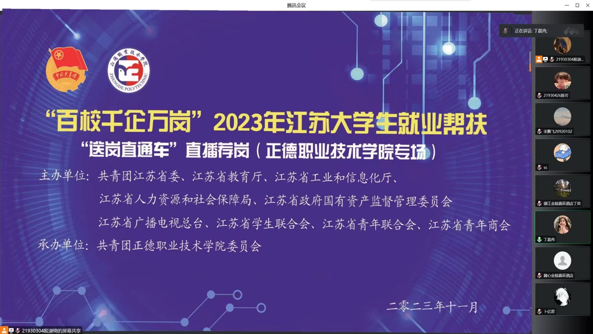 为落实《2023年江苏“百校千企万岗”大学生就业帮扶行动实施方案》工作要求,提升就业质量,助力2023届高校毕业生就业工作,11月17日,院团委举办“百校千企万岗”2022年江苏省大学生就业帮扶行动暨“送岗直通车”直播荐岗活动(正德职业技术学院专场)。