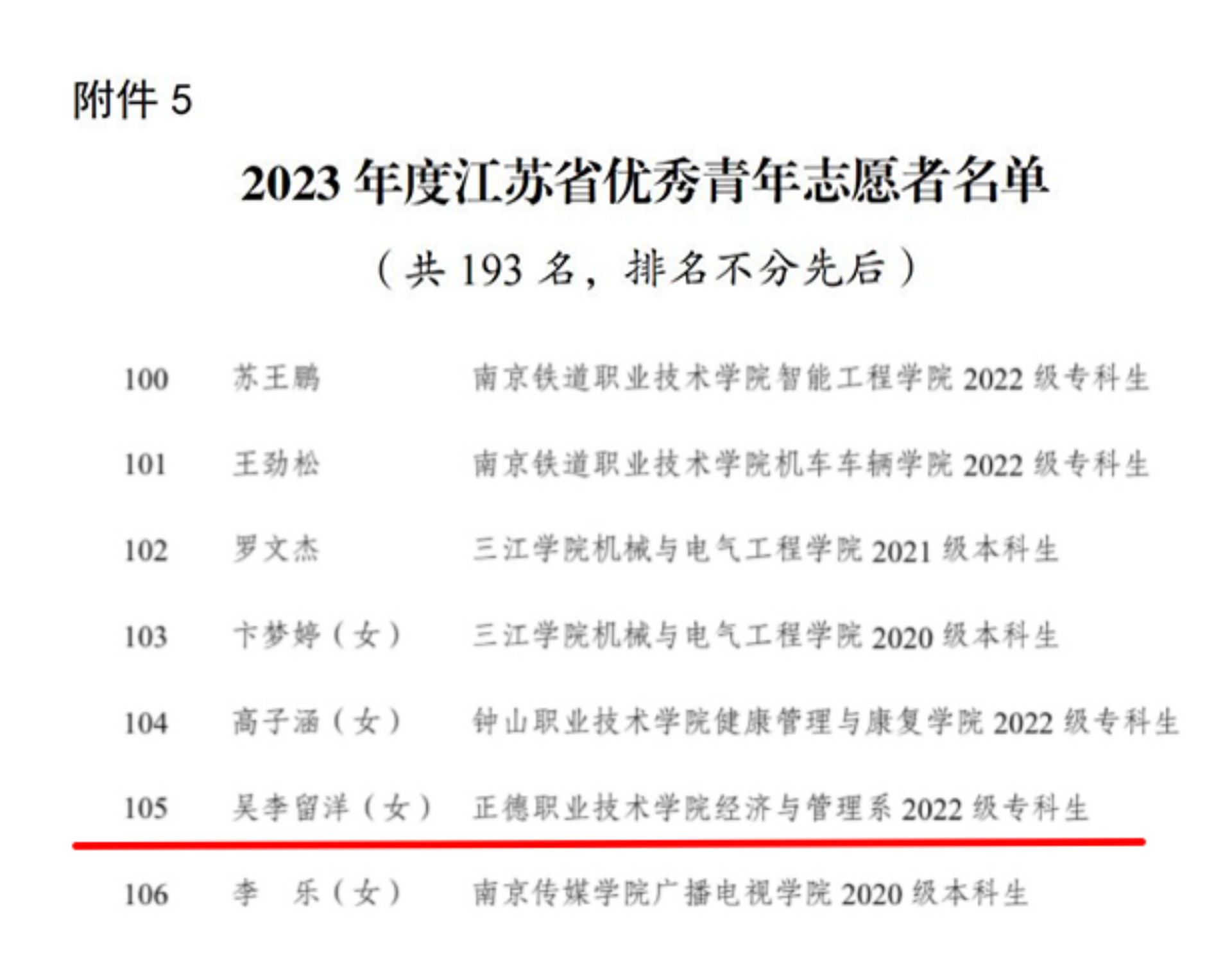 3月11日,江苏省青年志愿者协会下发《关于公布2023年度全省青年志愿者行动先进典型评选结果的通知》,对2023年全省青年志愿者行动先进典型进行表彰,我院“点亮童心 与爱同行”志愿服务项目荣获江苏省优秀青年志愿服务项目;学生处处长祝佳俊荣获江苏省青年志愿服务事业贡献奖;经济与管理系吴李留洋同学荣获江苏省优秀青年志愿者称号。