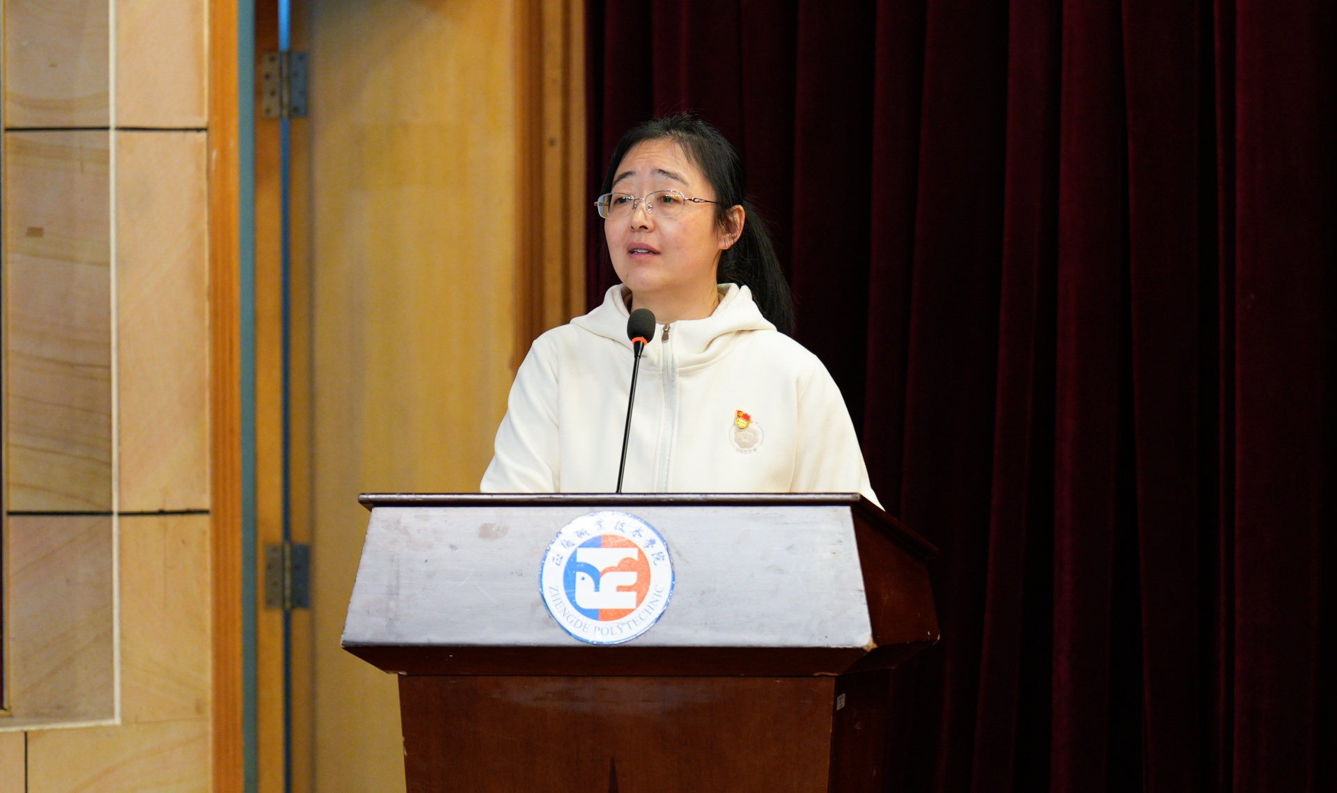 王燕以《如何成就最完美的自己》为题,她从新时代德智体美劳全面发展的要求为出发点,鼓励同学们要在品德上坚守原则,诚实守信;在学习上善于思考,刻苦努力;在体育上勇敢拼搏,增强体质;在艺术上欣赏美好,陶冶情操;在劳动中体验价值,获得成长。深入浅出地为大家解读了对于新时代德智体美劳五育并举的感悟,鼓励全体学生干部要努力成为德技并修,知行合一的时代新人,成就最完美的自己。