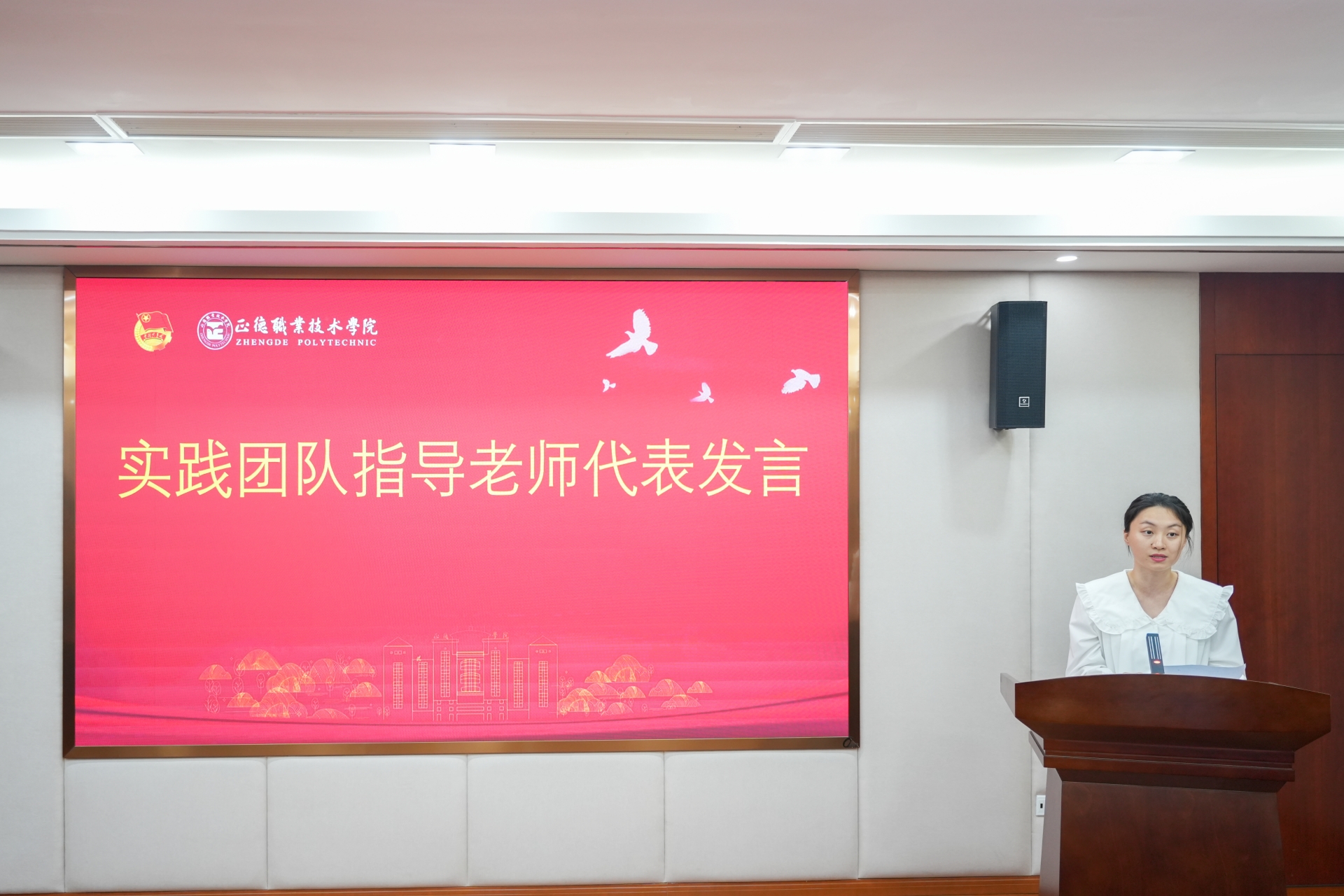 今年我院共组建12支院级重点暑期社会实践团队,将围绕传承红色基因、助力乡村振兴、赓续文化根脉、躬行基层一线等内容开展活动,旨在引导正德青年在服务基层的躬身实践中受教育、长才干、做贡献,魏兴彪介绍了我院2024年暑期社会实践的前期筹备工作并宣读了重点团队立项名单。汽车与机电工程系单韬宁同学代表各实践团队负责人表示要在社会实践中严格要求自己,遵守规章制度,在挥洒青春汗水的过程中展现正德学子的青春风采。艺术设计与建筑工程系辅导员魏玮老师作为实践团队指导老师代表从选题要契合时代,富有前瞻性,活动要守正创新,富有可行性,实践要多方联动,富有长效性三个方面做了交流分享。